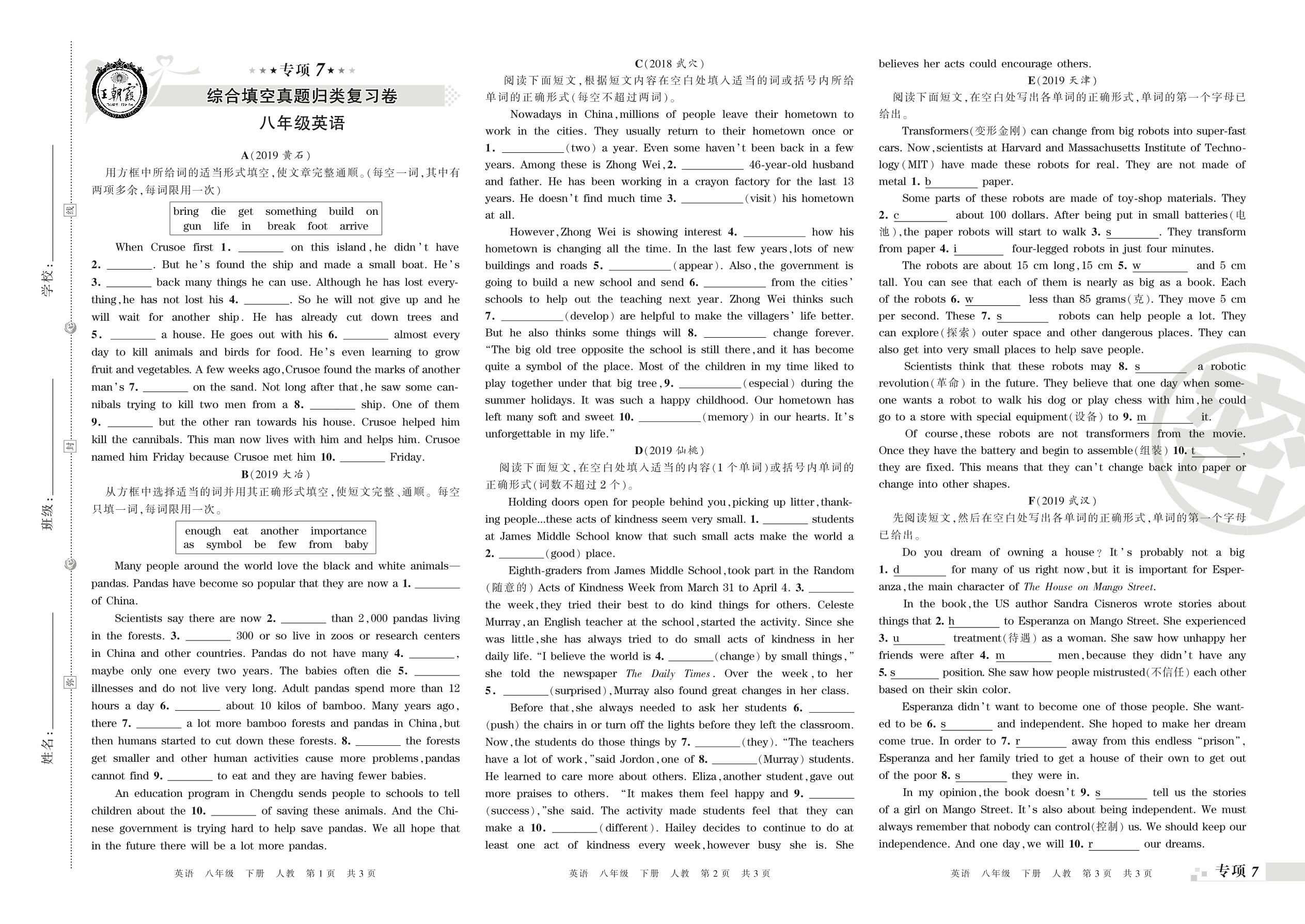王朝霞期末专项卷——综合填空、书面表达真题归类复习卷八年级下册英语(人教版)_R210809100726【0】