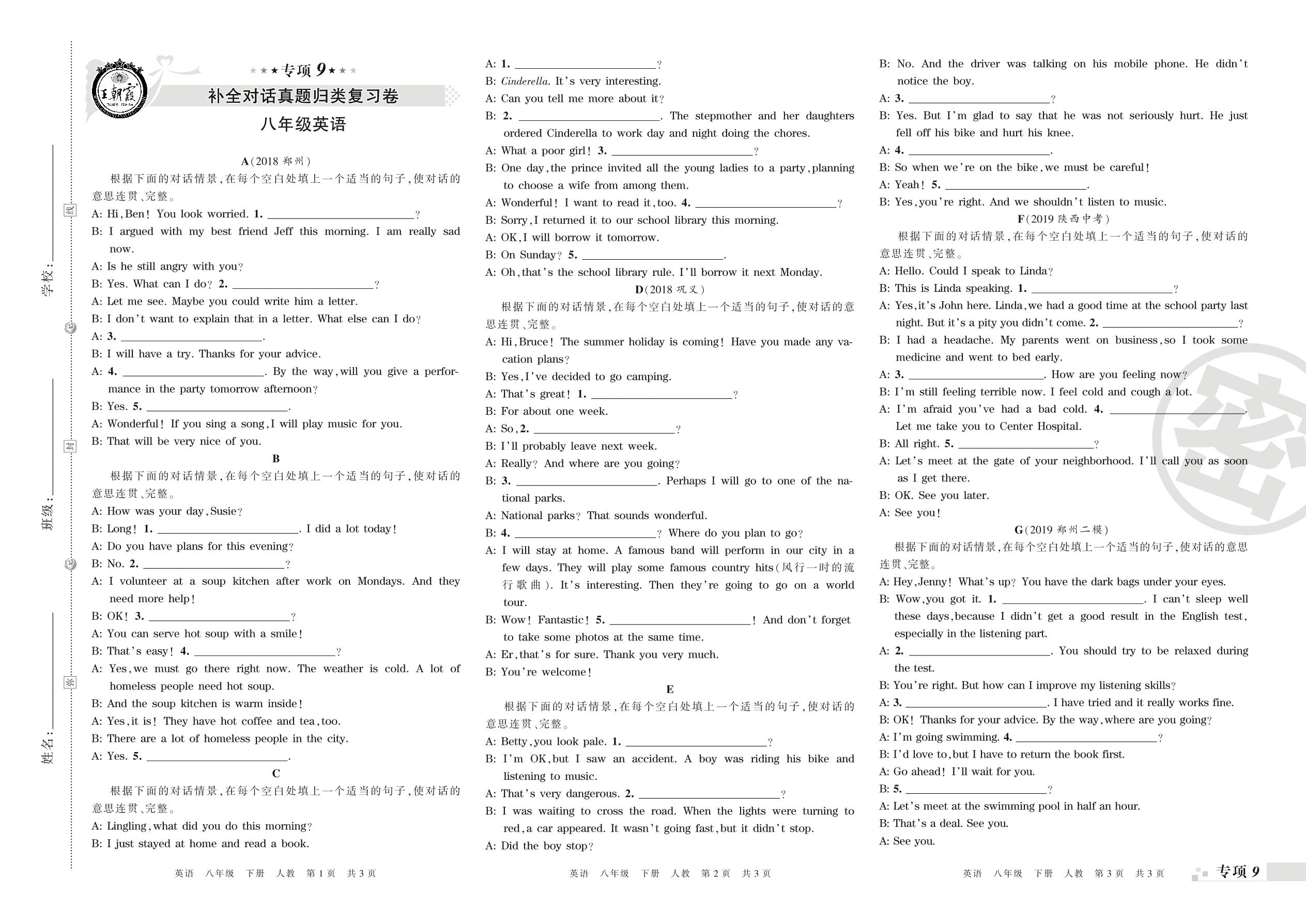王朝霞期末专项卷——补全对话、书面表达真题归类复习卷八年级下册英语(人教版)_R210809100911【0】