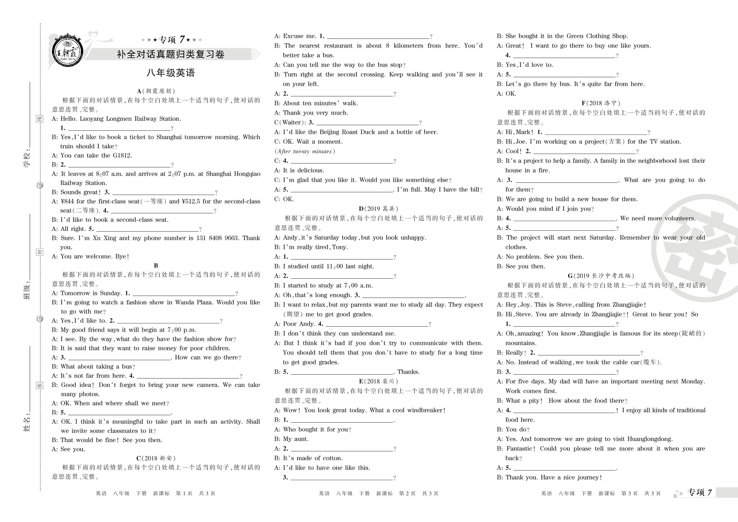 王朝霞期末专项卷——补全对话、书面表达真题归类复习卷八年级下册英语(新课版)_R210809101146【0】