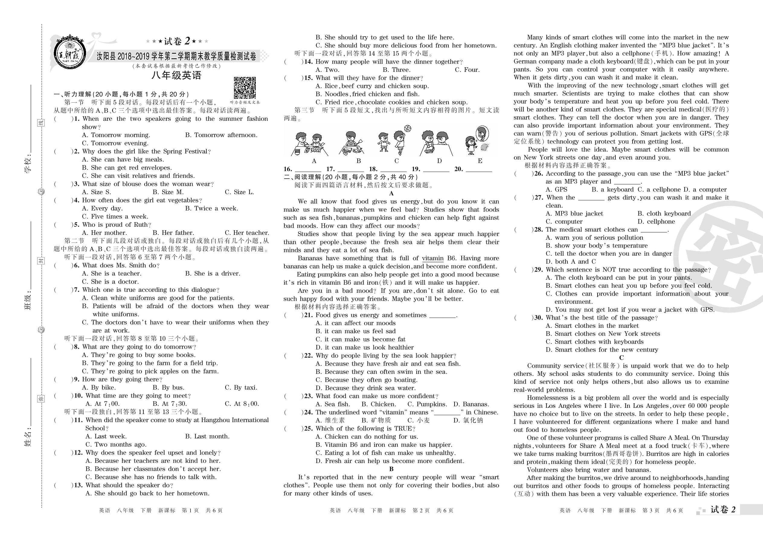 2018-2019学年第二学期洛阳市汝阳县八年级英语试卷(新课版)【2】