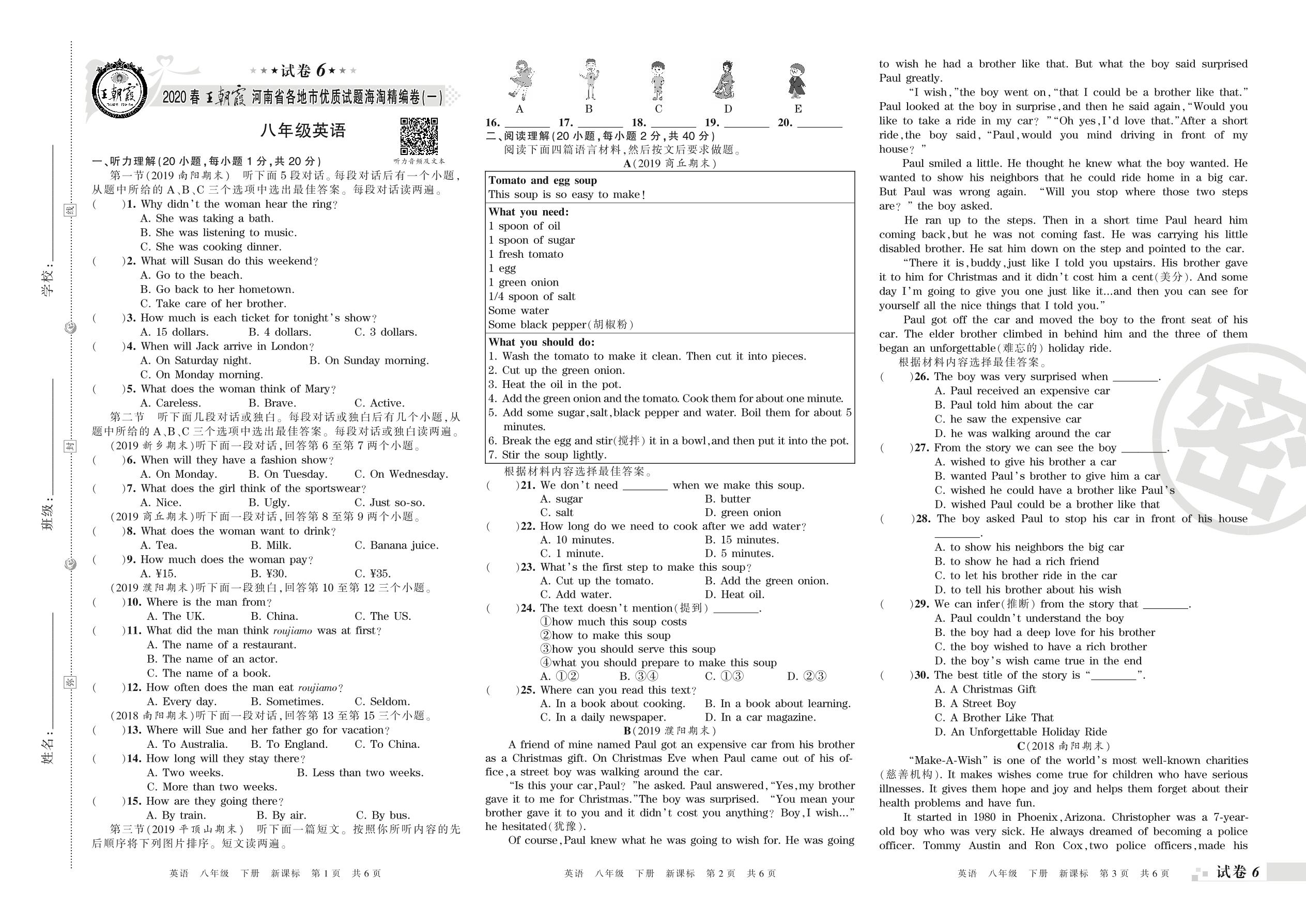 河南省各地市优质试题海淘精编卷(一)八年级下册英语(新课版)_R210809101337【6】