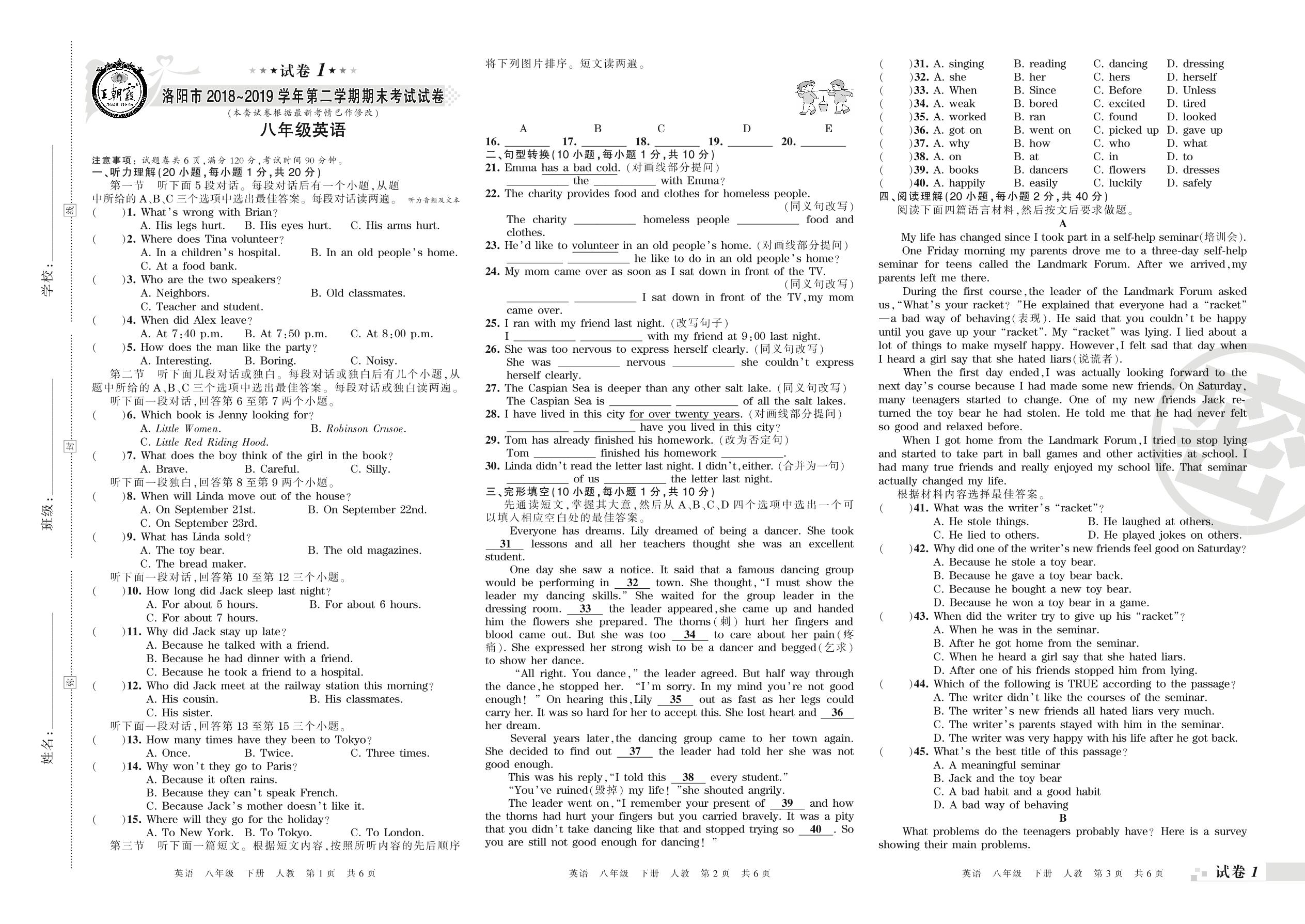 2018-2019学年第二学期洛阳市八年级英语试卷(人教版)【1】