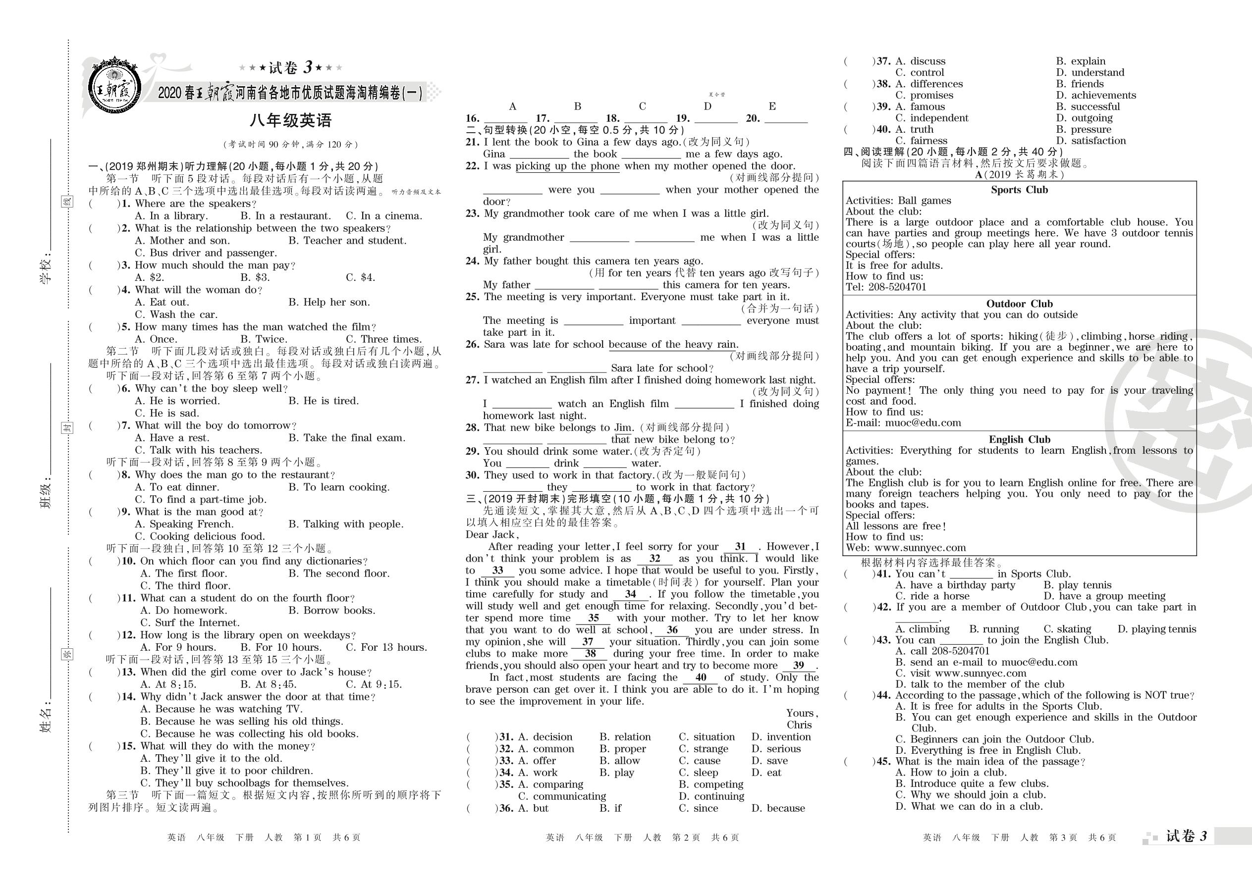 河南省各地市优质试题海淘精编卷(一)八年级下册英语(人教版)_R210809101753【3】