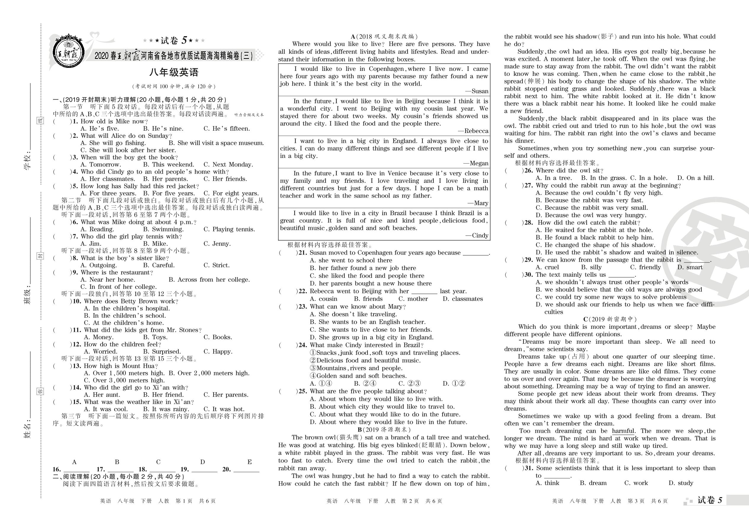 河南省各地市优质试题海淘精编卷(三)八年级下册英语(人教版)_R210809101849【5】