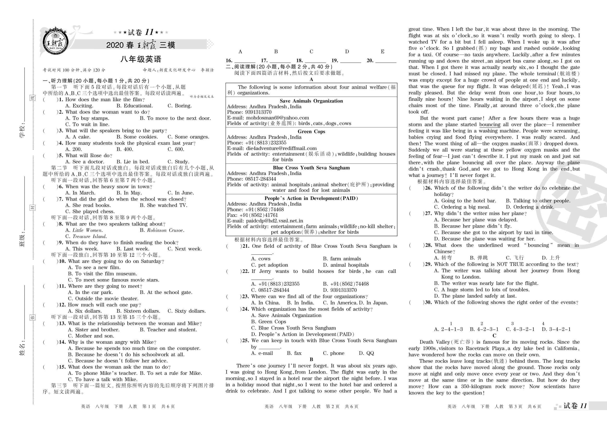 王朝霞期末模拟卷八年级下册英语(人教版)_R210809102134【11】