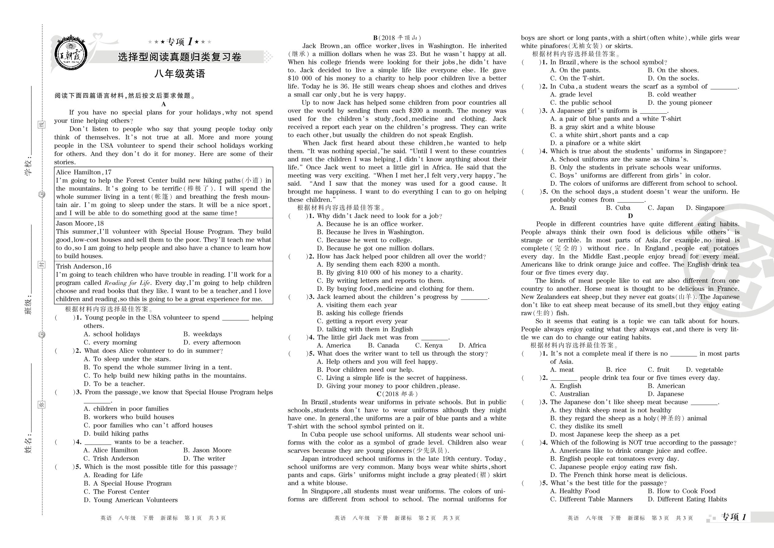 王朝霞期末专项卷——选择型阅读、任务型阅读真题归类复习卷八年级下册英语(新课版)_R210809102210【0】