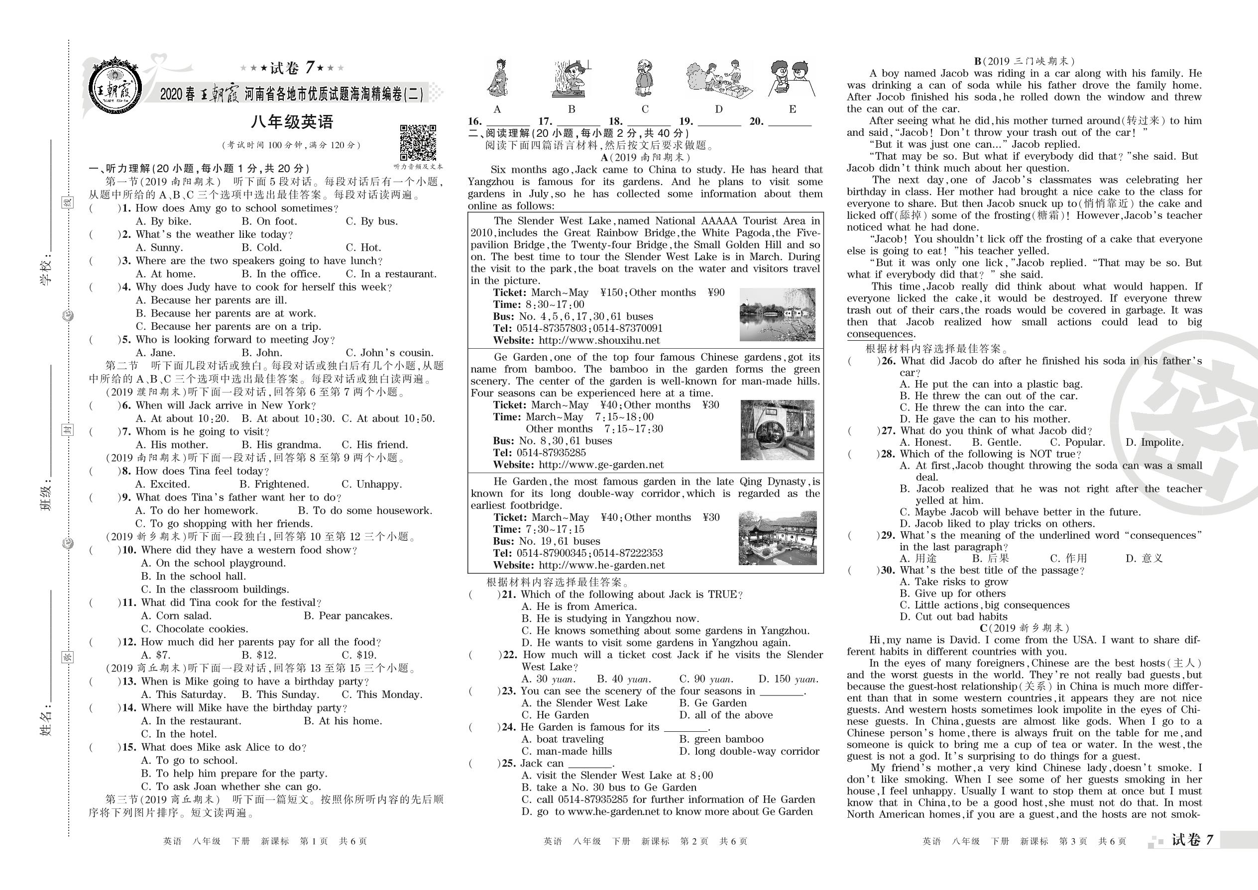 河南省各地市优质试题海淘精编卷(二)八年级下册英语(新课版)【7】