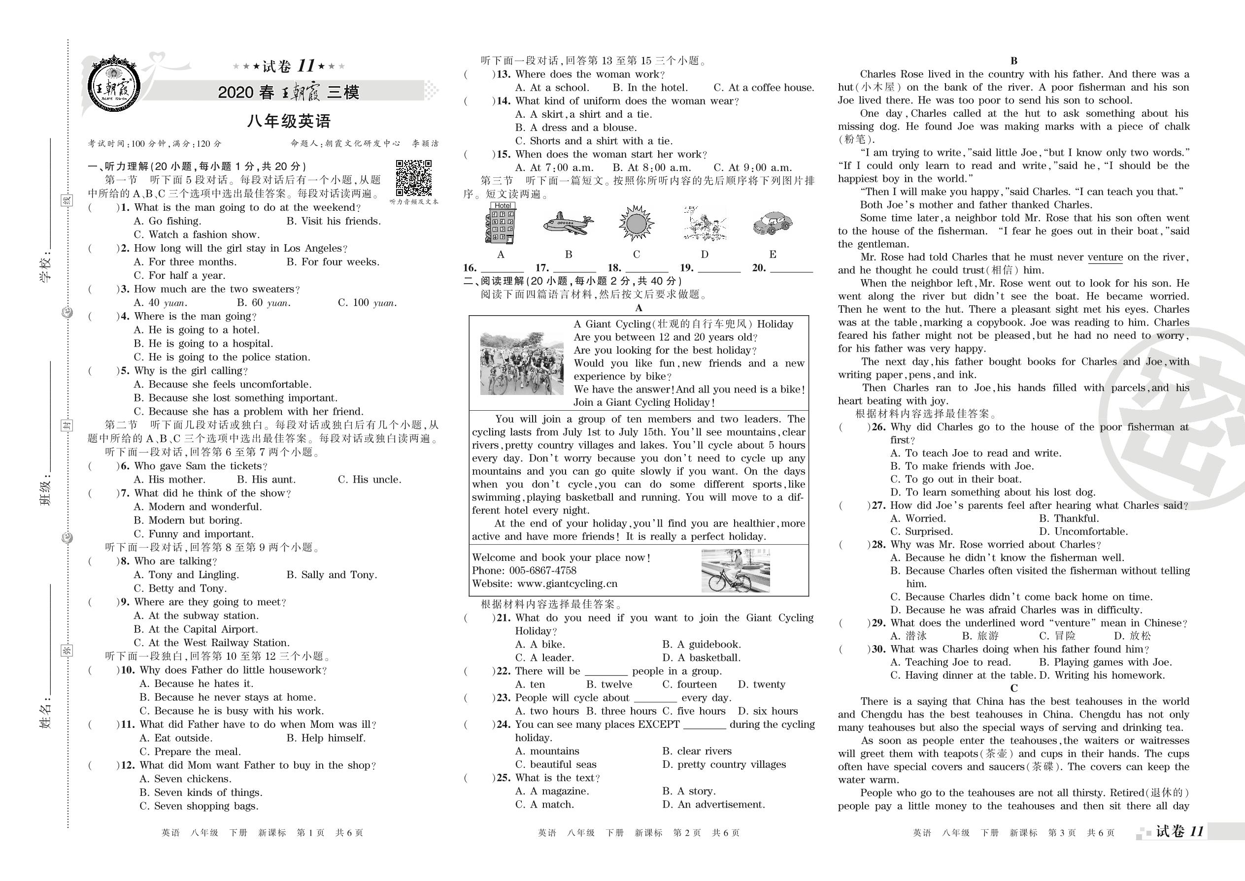 王朝霞期末模拟卷八年级下册英语(新课版)_R210809102415【11】