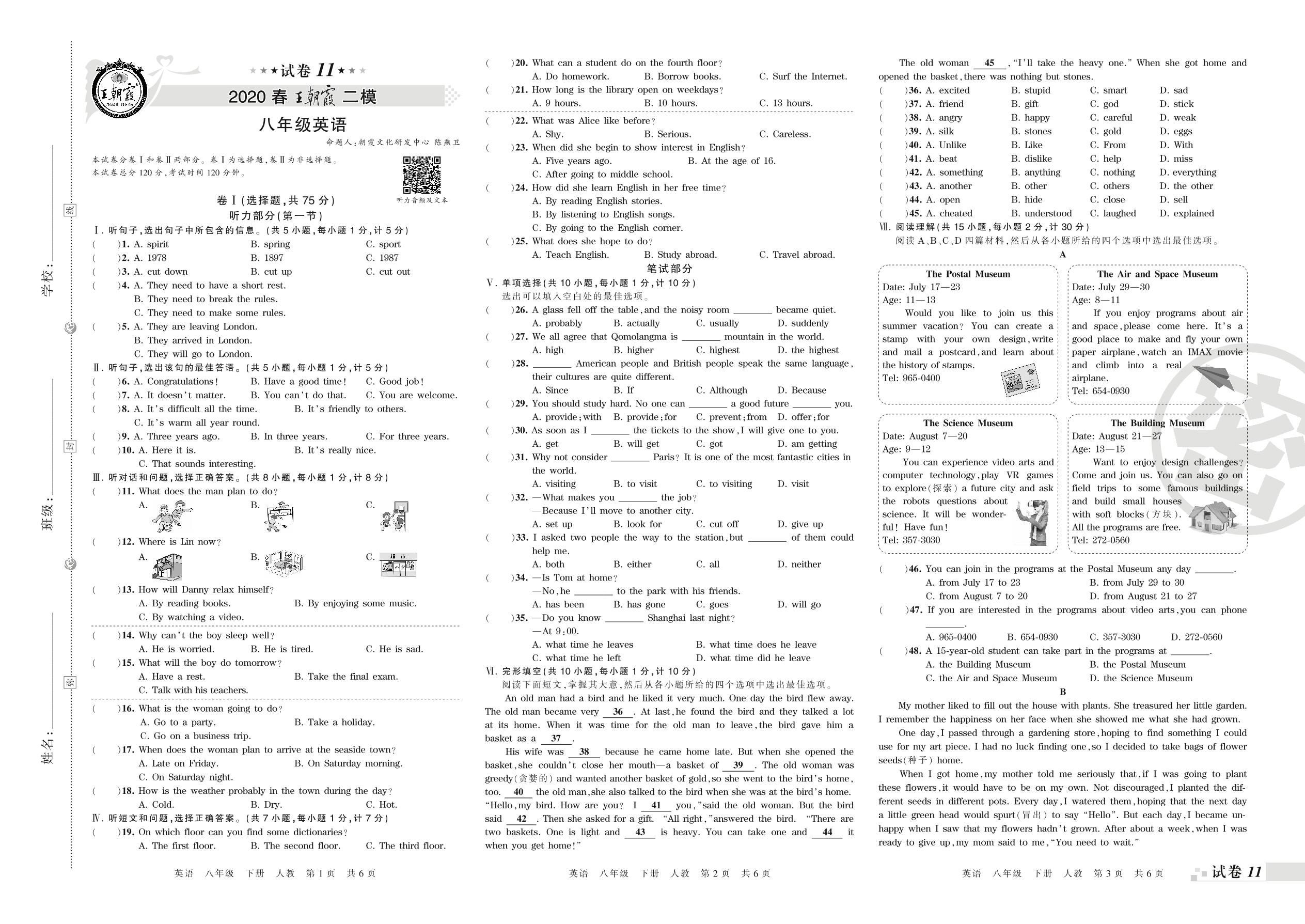 王朝霞期末模拟卷八年级下册英语(人教版)_R210809102642【11】