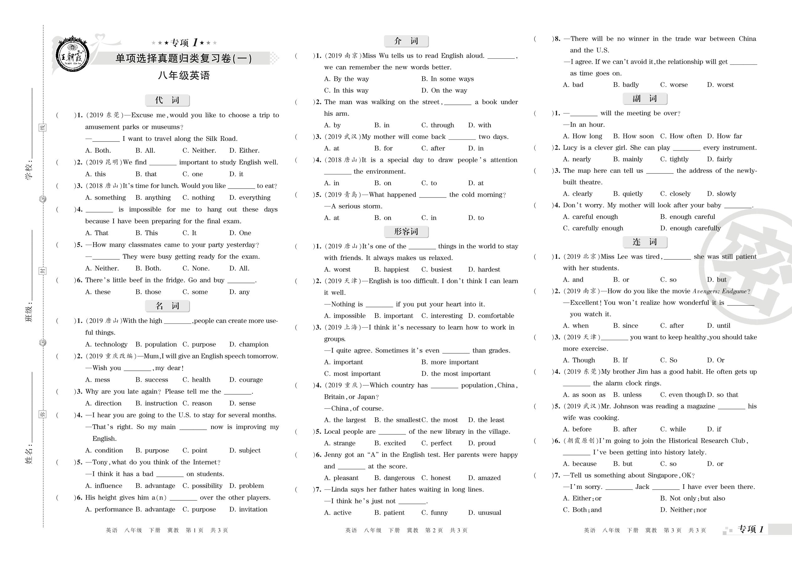 王朝霞期末专项卷——单项选择(一)(二)真题归类复习卷八年级下册英语(冀教版)_R210809102652【0】
