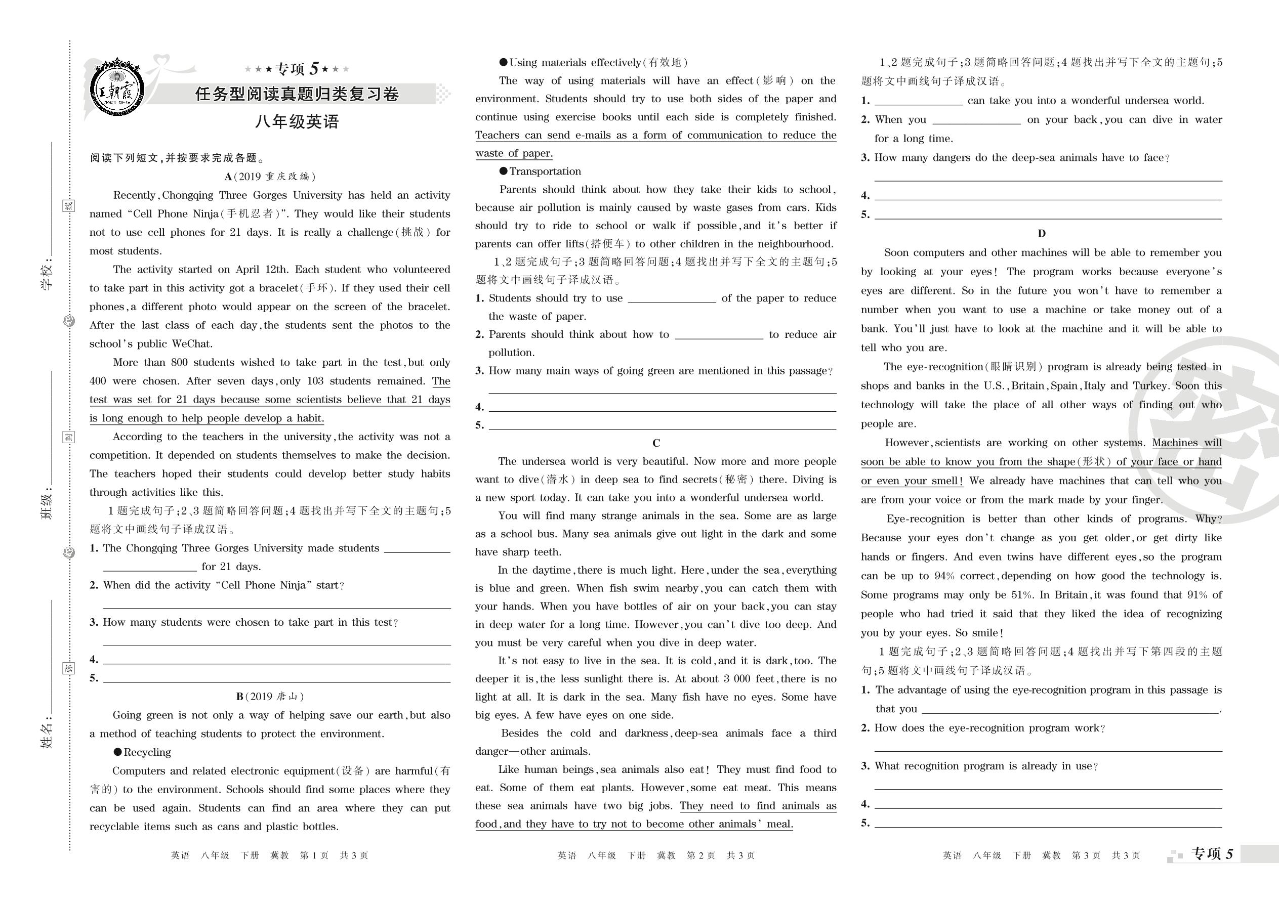 王朝霞期末专项卷——任务型阅读、词语运用真题归类复习卷八年级下册英语(冀教版)_R210809102709【0】