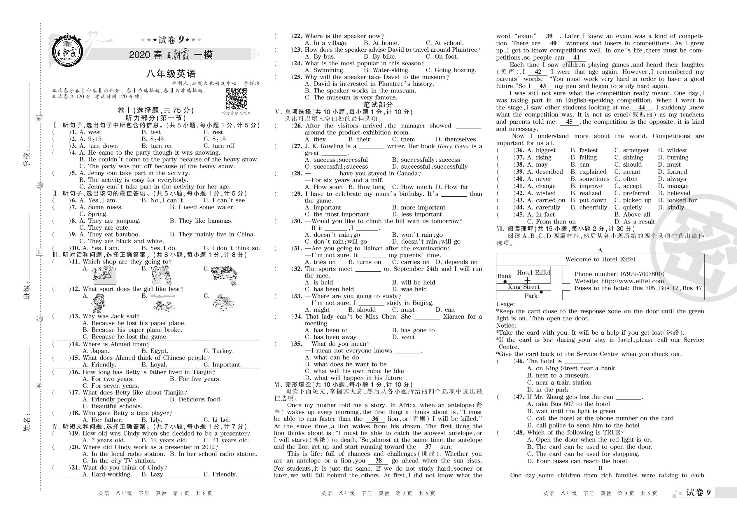 王朝霞期末模拟卷八年级下册英语(冀教版)_R210809102852【9】
