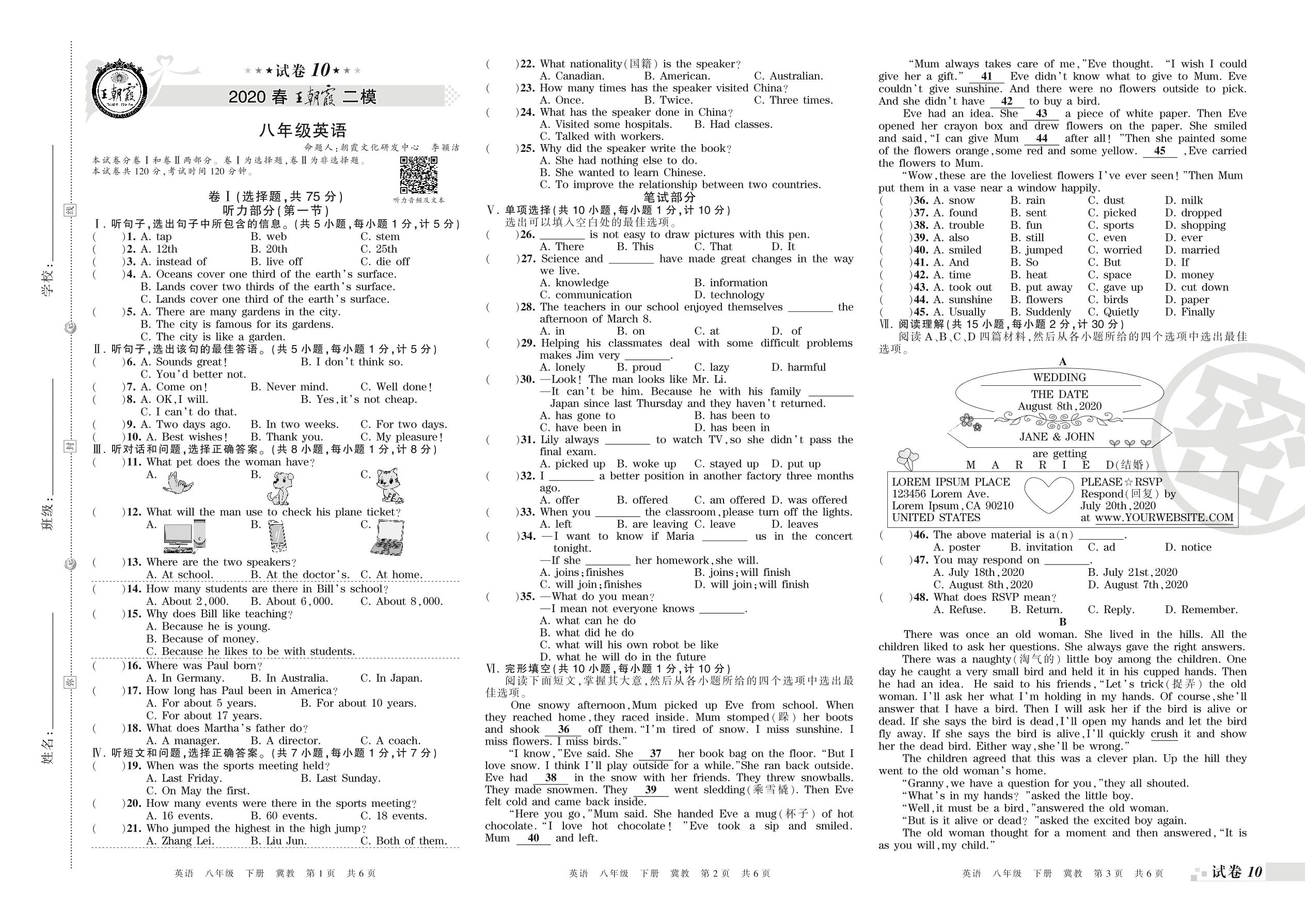 王朝霞期末模拟卷八年级下册英语(冀教版)_R210809102902【10】