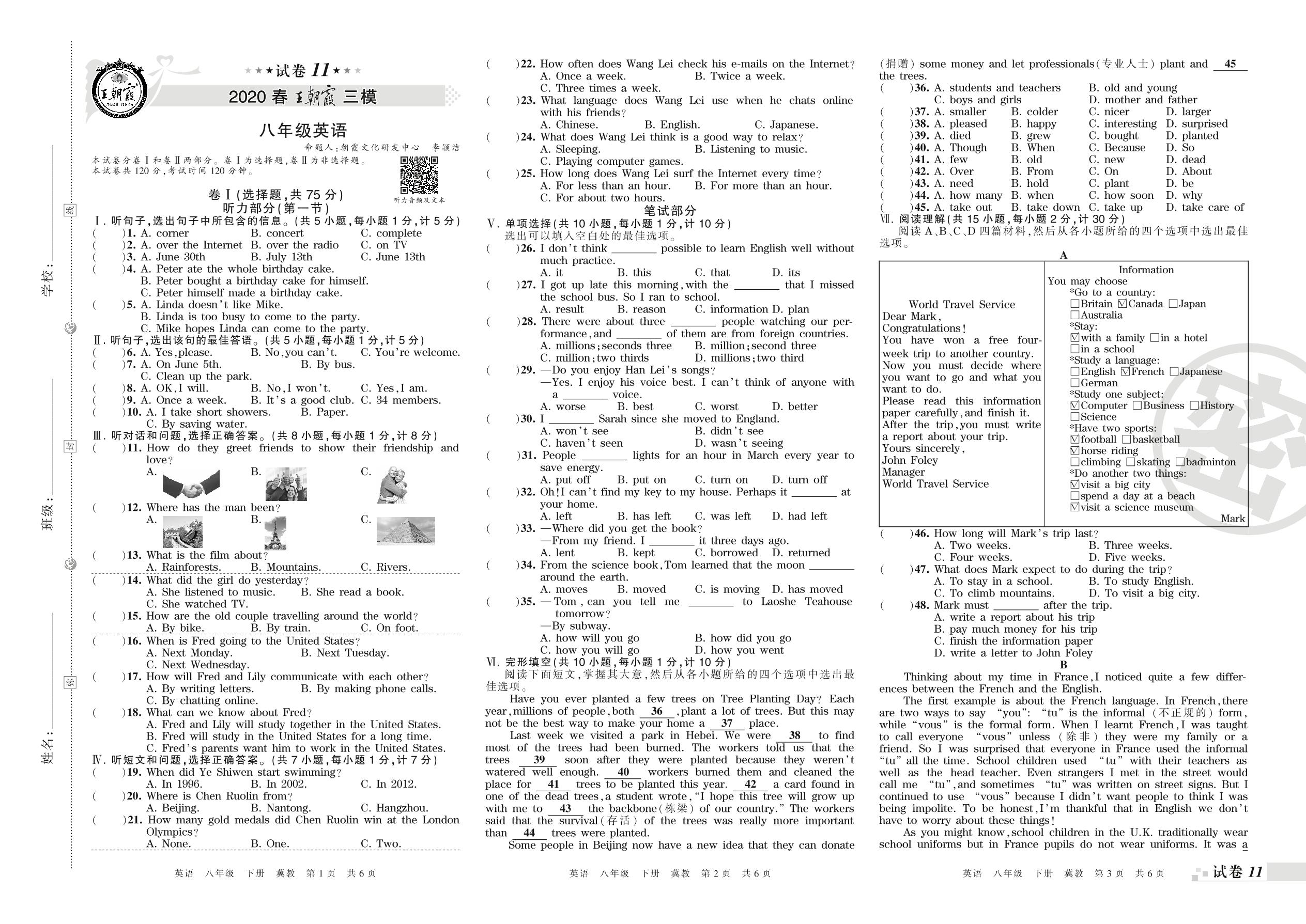 王朝霞期末模拟卷八年级下册英语(冀教版)_R210809102913【11】