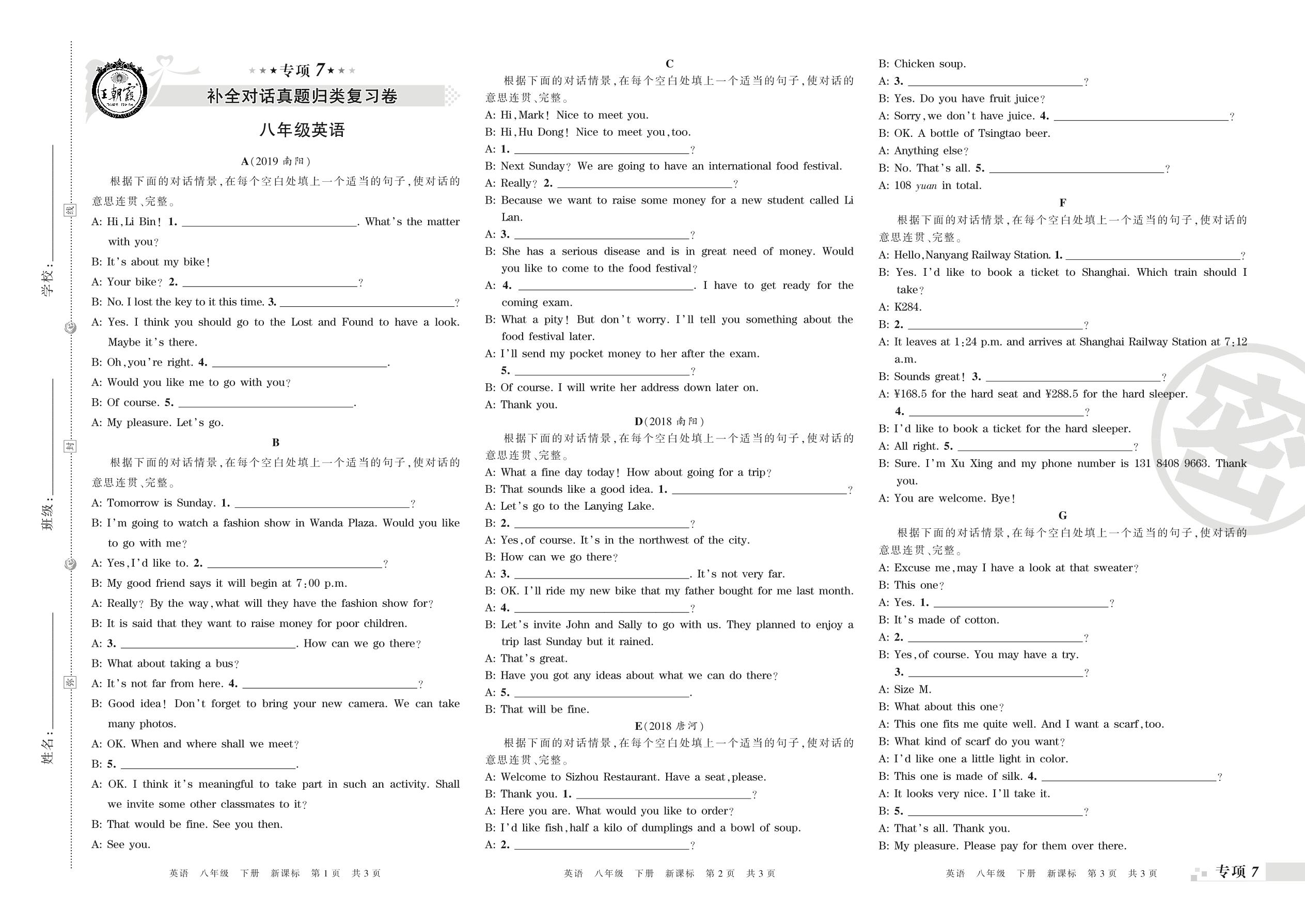 王朝霞期末专项卷——补全对话、书面表达真题归类复习卷八年级下册英语(新课版)_R210809102930【0】