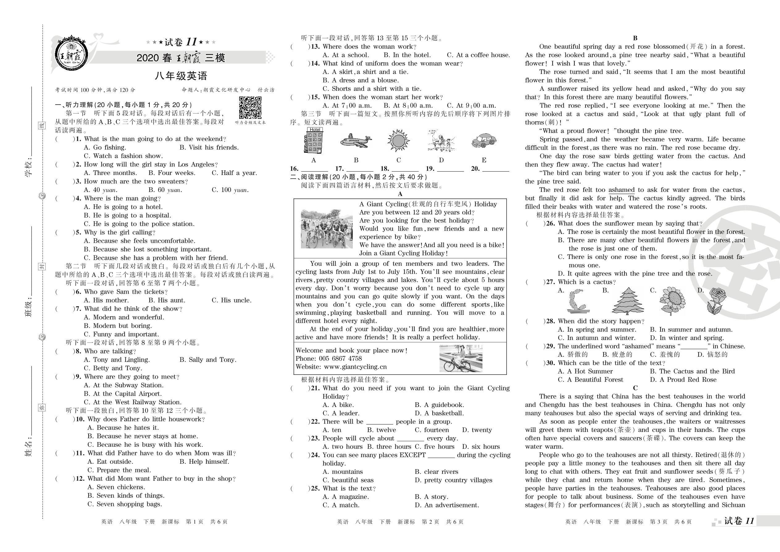 王朝霞期末模拟卷八年级下册英语(新课版)_R210809103104【11】