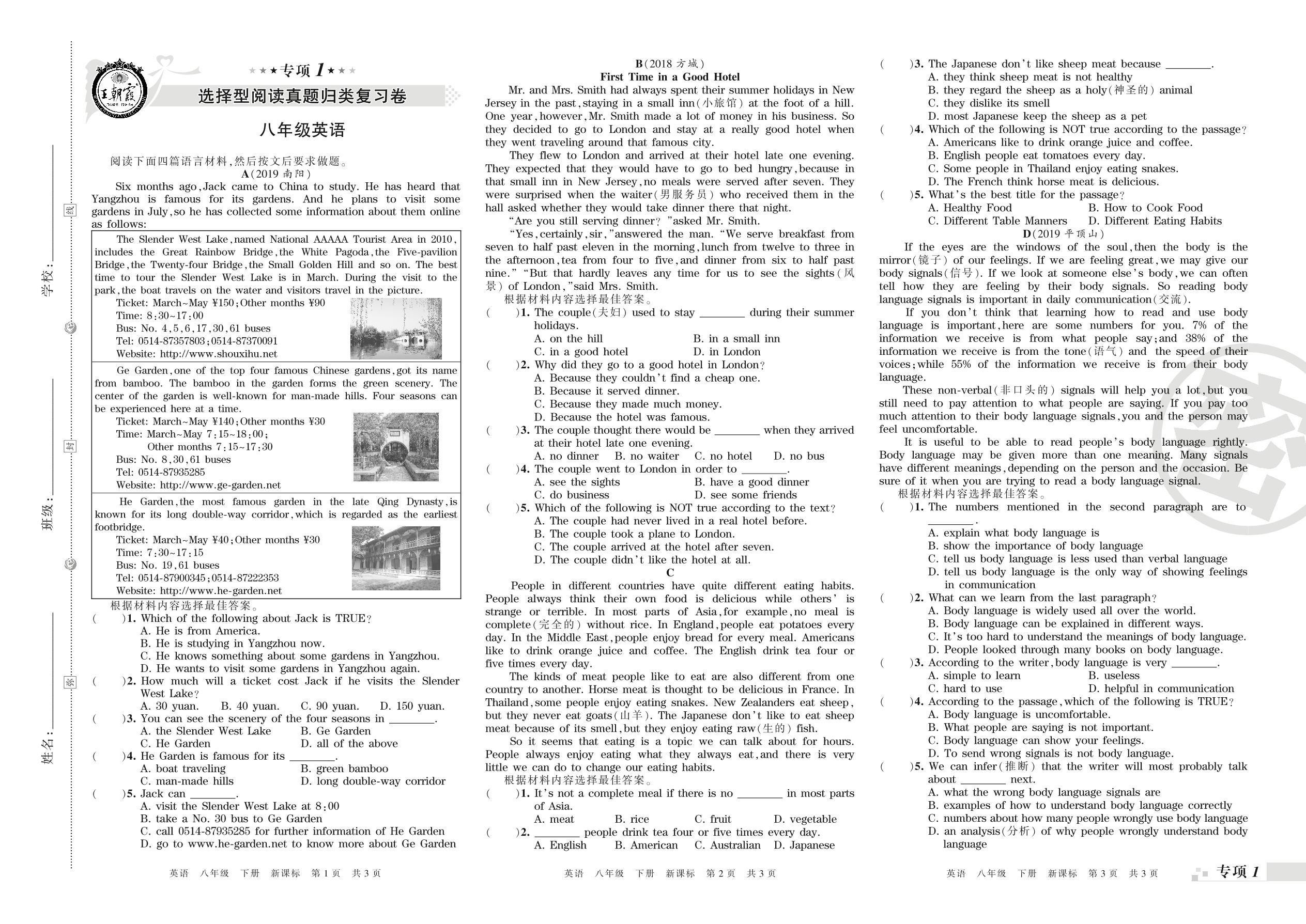 王朝霞期末专项卷——选择型阅读、任务型阅读真题归类复习卷八年级下册英语(新课版)_R210809103114【0】