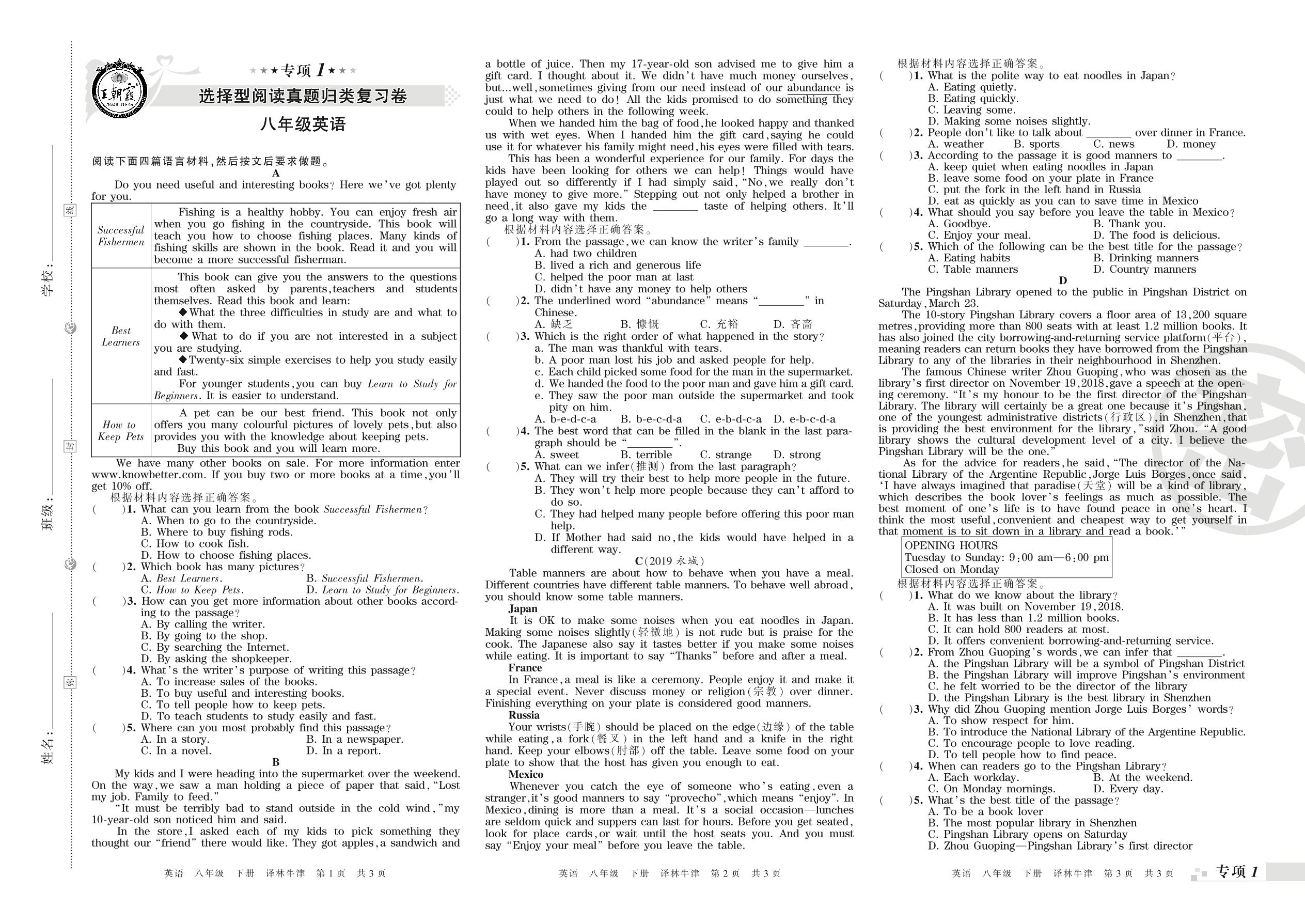 王朝霞期末专项卷——选择型阅读、任务型阅读真题归类复习卷八年级下册英语(译林版)_R210809103135【0】