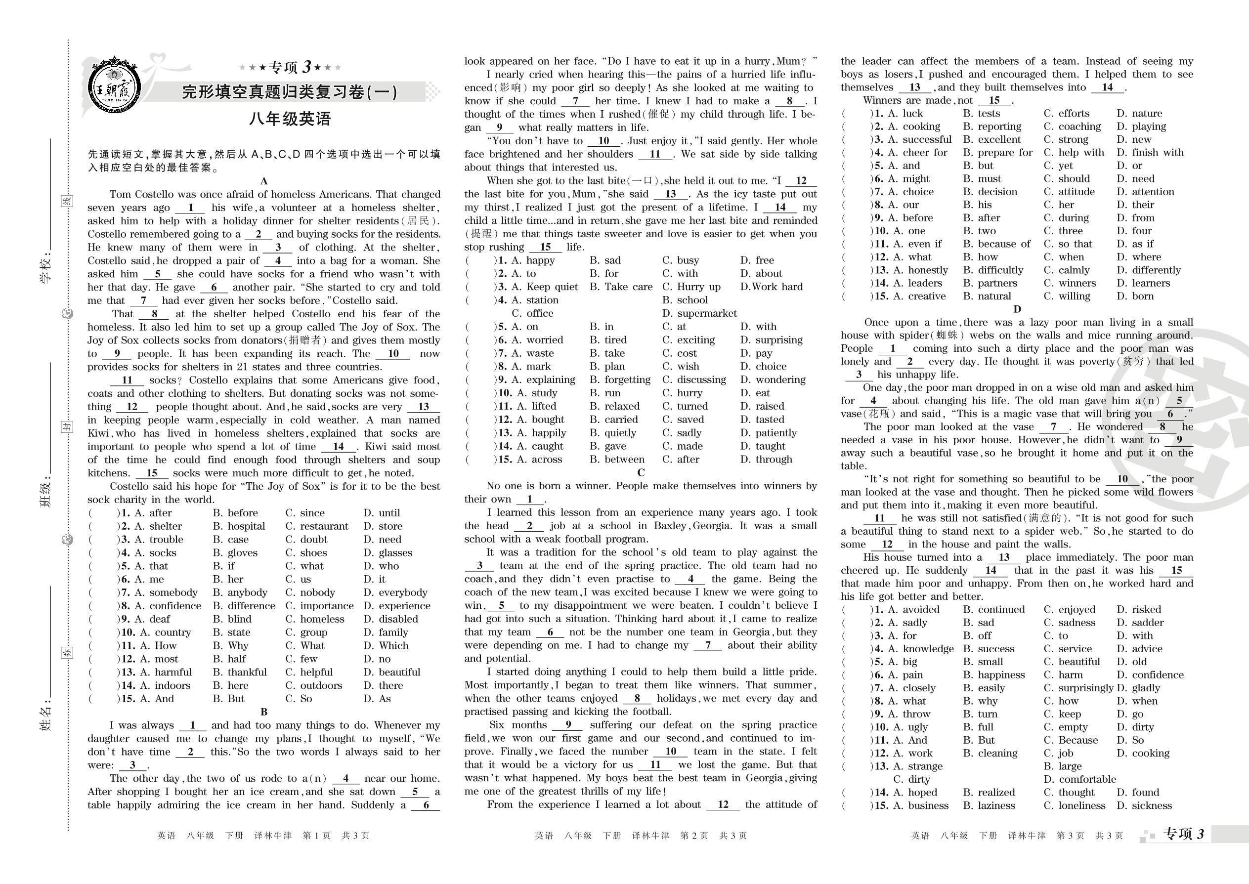 王朝霞期末专项卷——完形填空(一)(二)真题归类复习卷八年级下册英语(译林版)_R210809103145【0】
