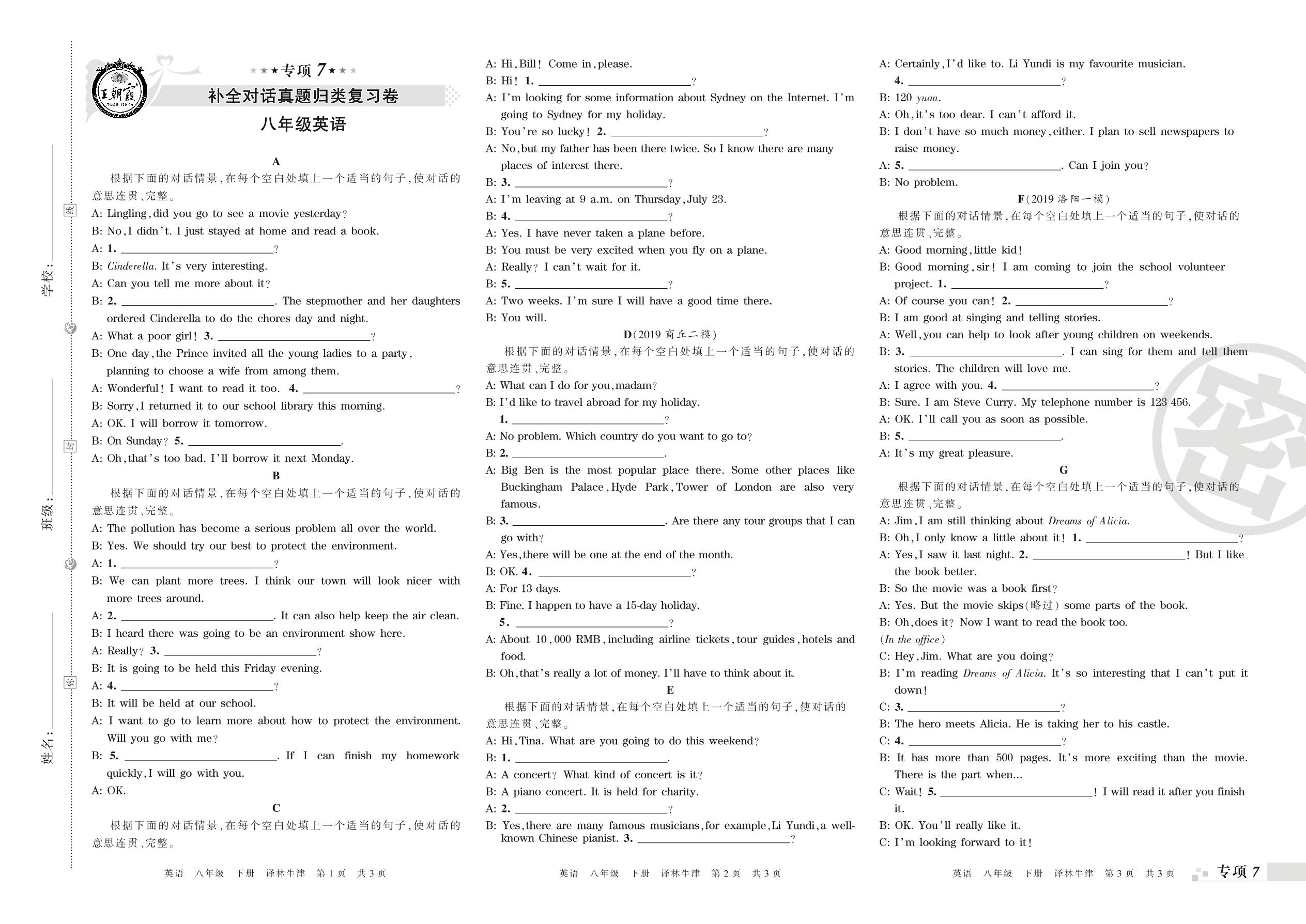 王朝霞期末专项卷——补全对话、书面表达真题归类复习卷八年级下册英语(译林版)_R210809103204【0】