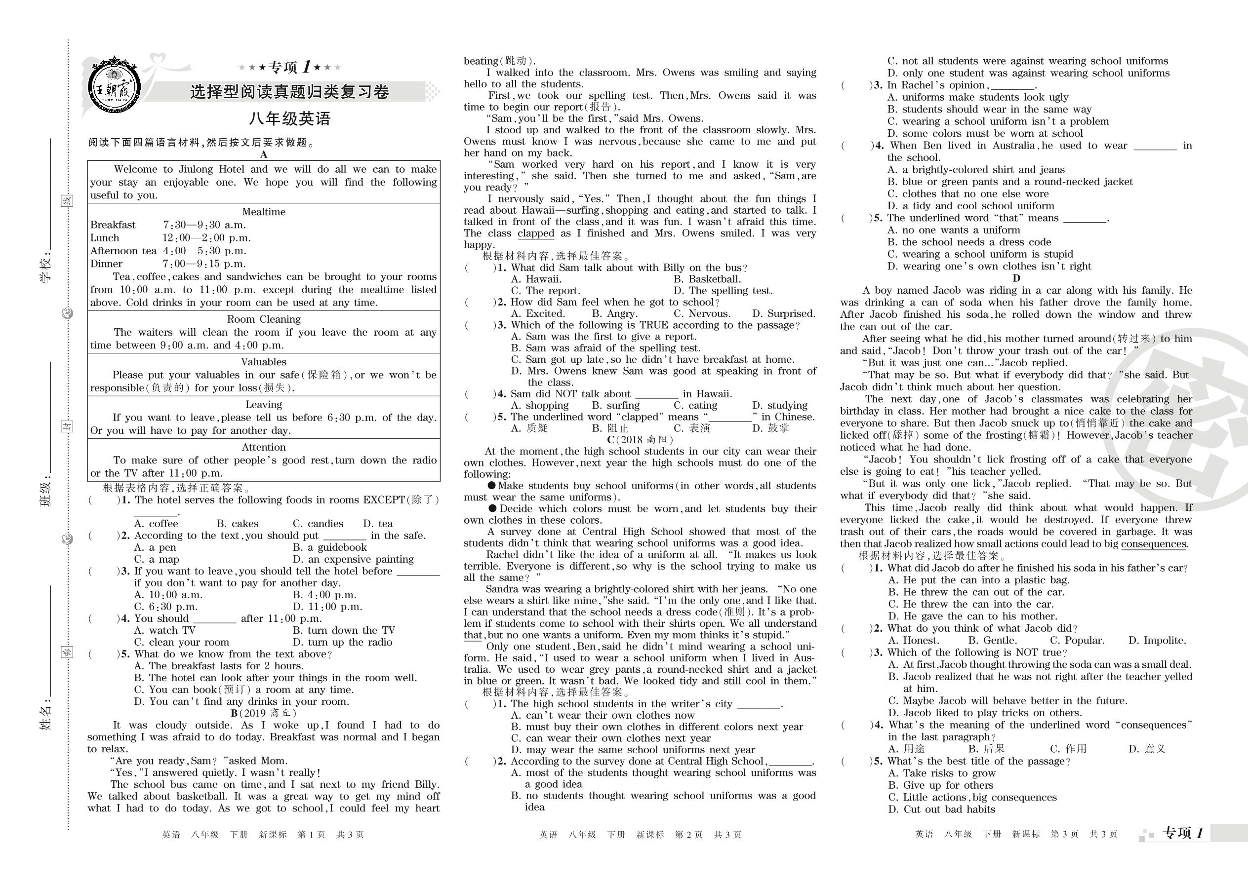 王朝霞期末专项卷——选择型阅读、任务型阅读真题归类复习卷八年级下册英语(新课版)_R210809103329【0】