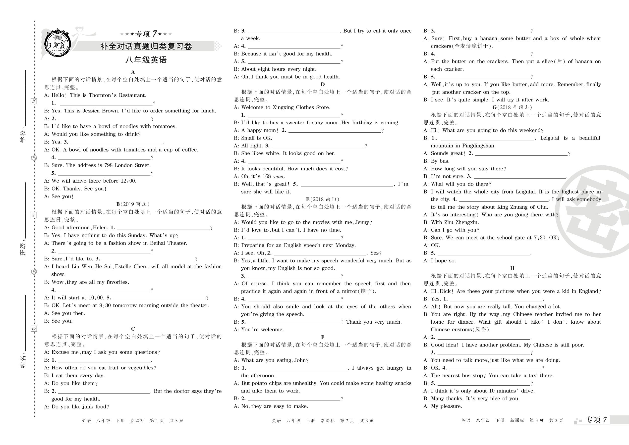 王朝霞期末专项卷——补全对话、书面表达真题归类复习卷八年级下册英语(新课版)_R210809103351【0】