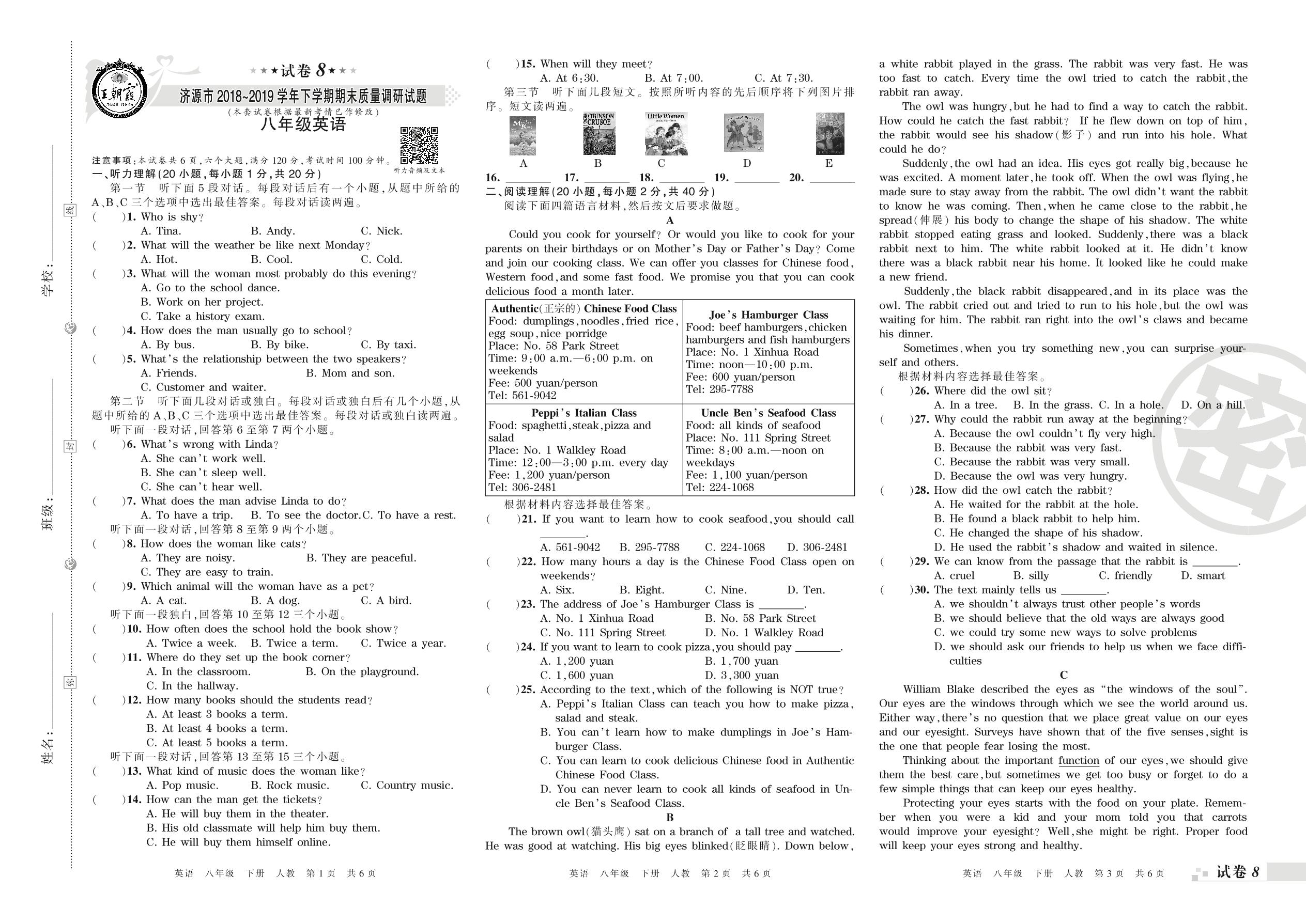 2018-2019学年第二学期济源市八年级英语试卷(人教版)【8】