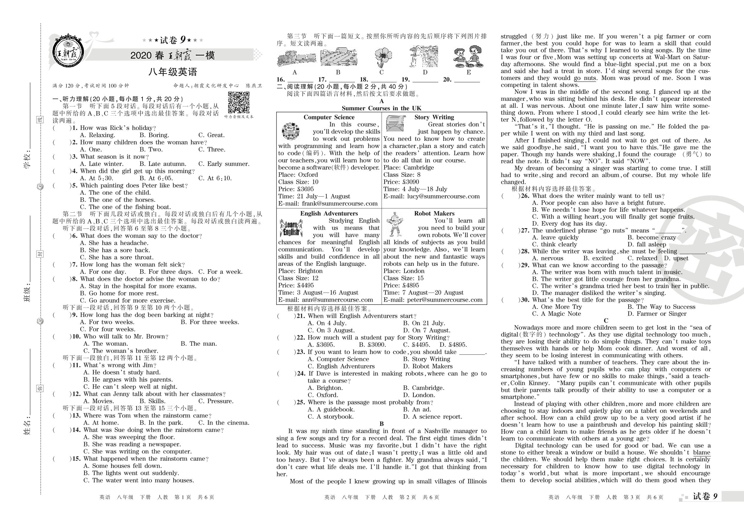 王朝霞期末模拟卷八年级下册英语(人教版)_R210809103712【9】