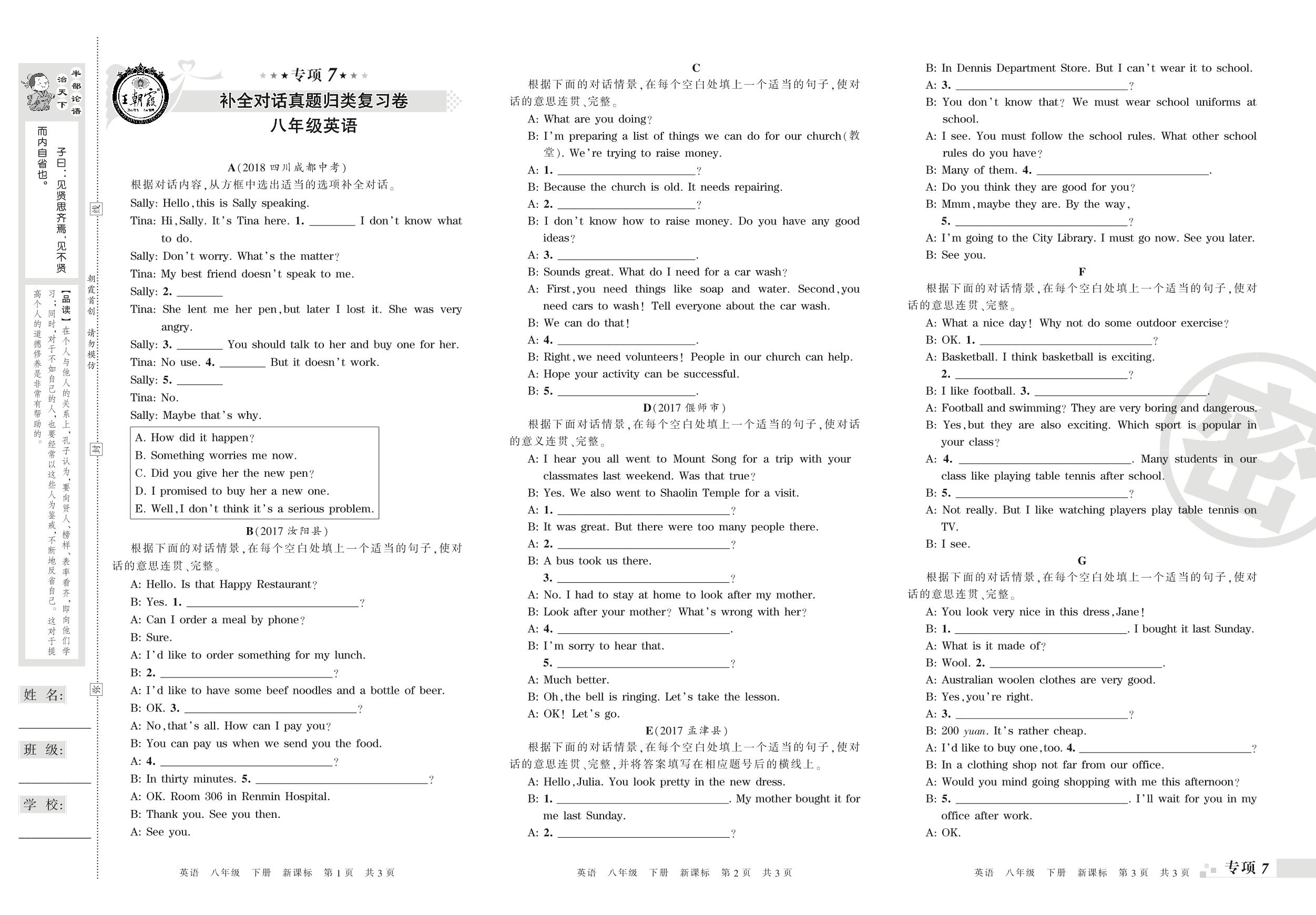 王朝霞期末专项卷——补全对话、书面表达真题归类复习卷八年级下册英语(新课版)_R210809103808【0】