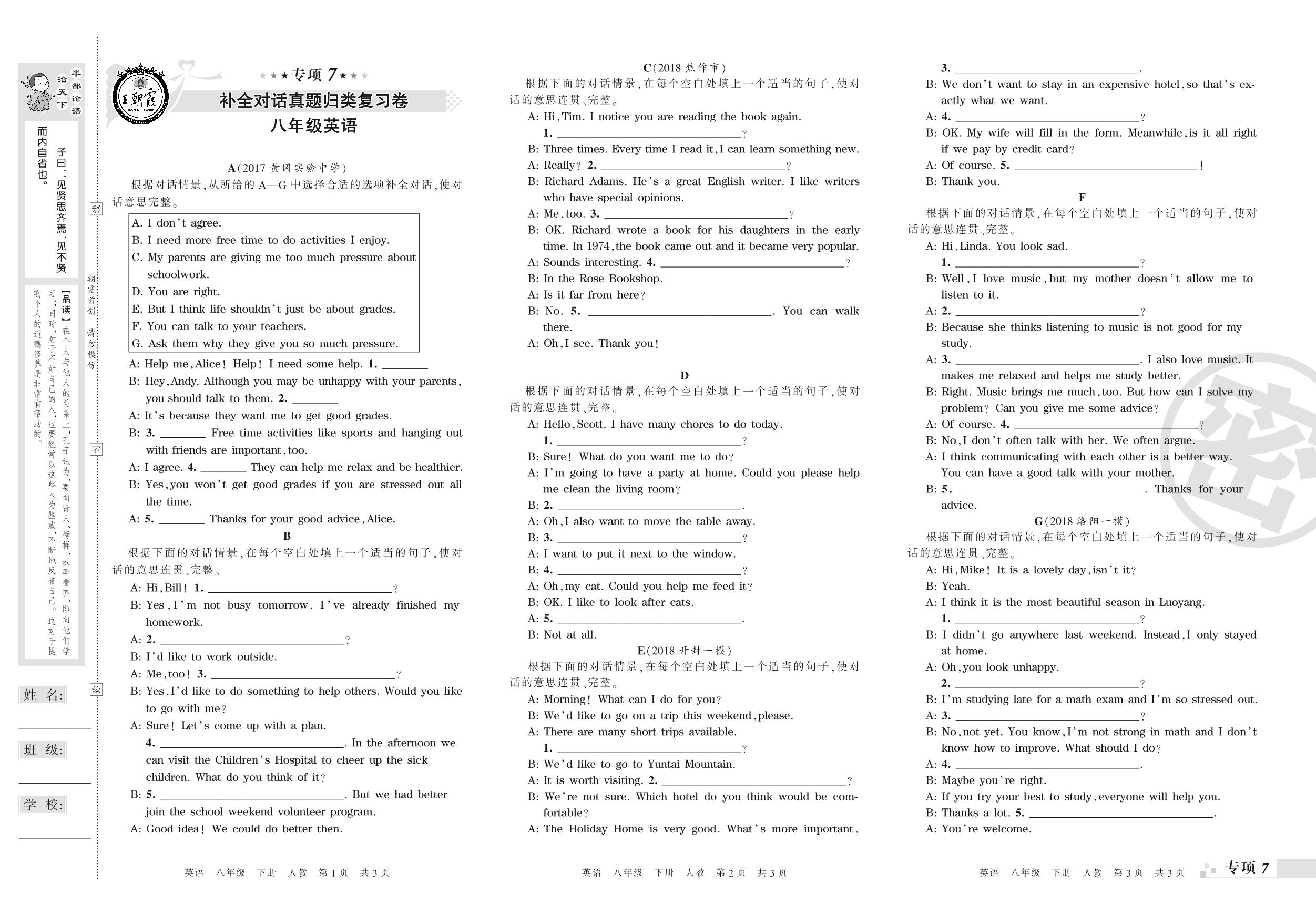 王朝霞期末专项卷——补全对话、书面表达真题归类复习卷八年级下册英语(人教版)_R210809104011【0】