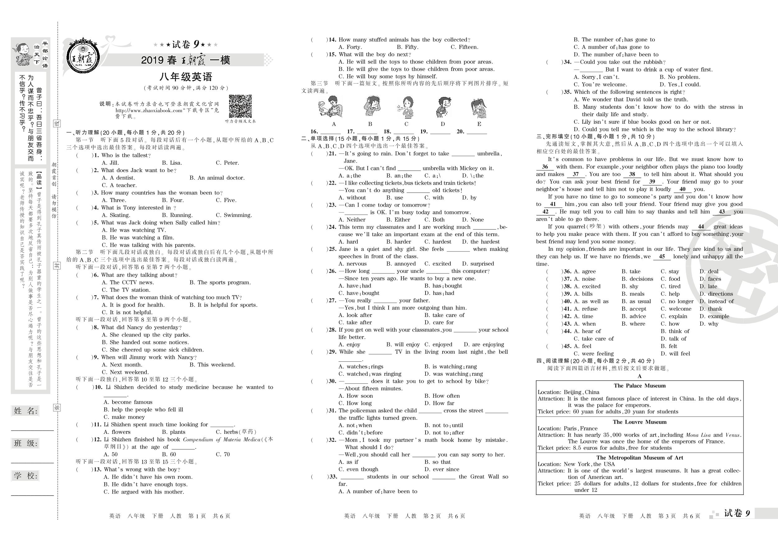 王朝霞期末模拟卷八年级下册英语(人教版)_R210809104134【9】