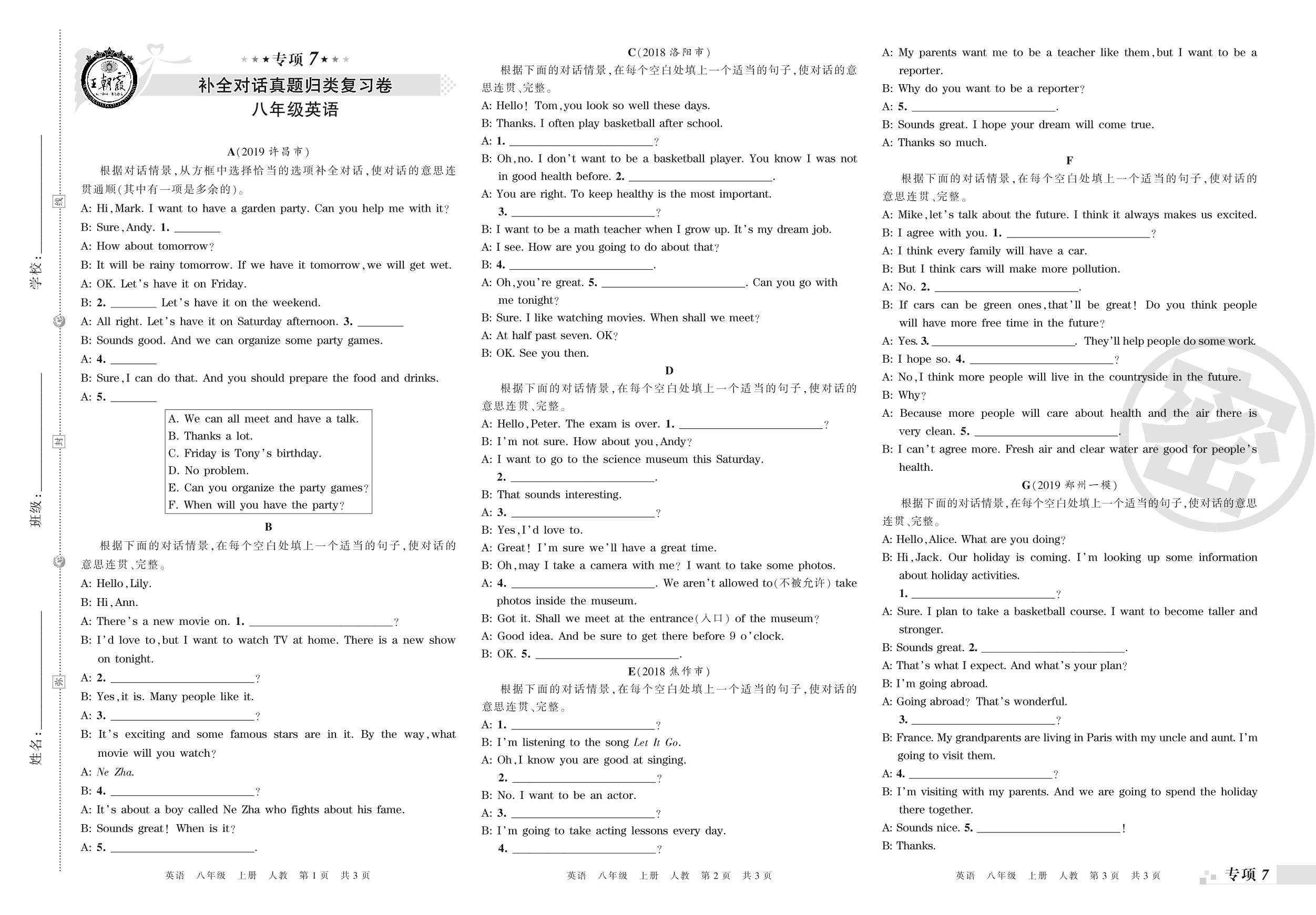 王朝霞期末专项卷——补全对话、书面表达真题归类复习八年级上册英语(人教版)_R210809104506【0】