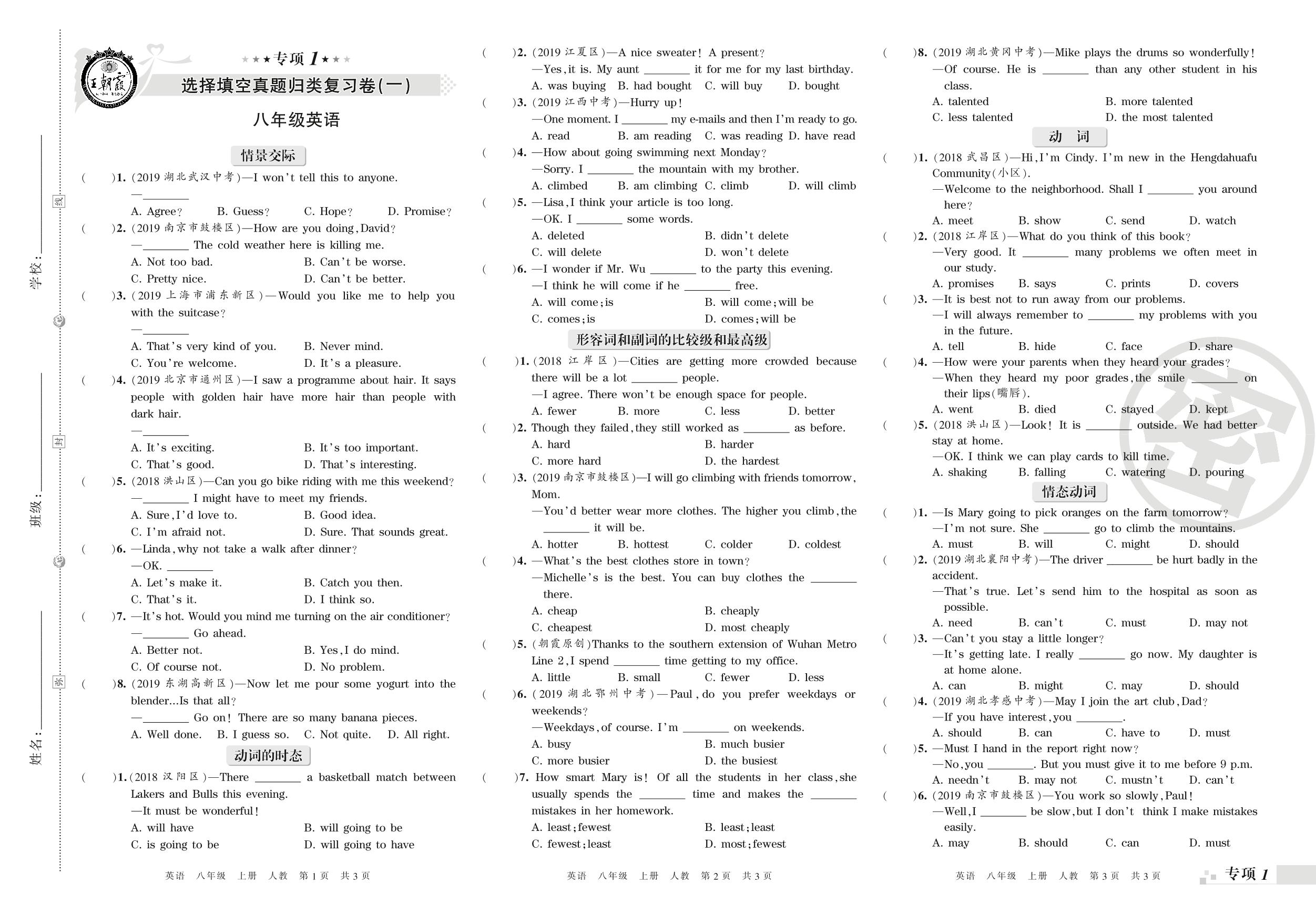 王朝霞期末专项卷——选择填空真题归类复习八年级上册英语(人教版)_R210809104606【0】