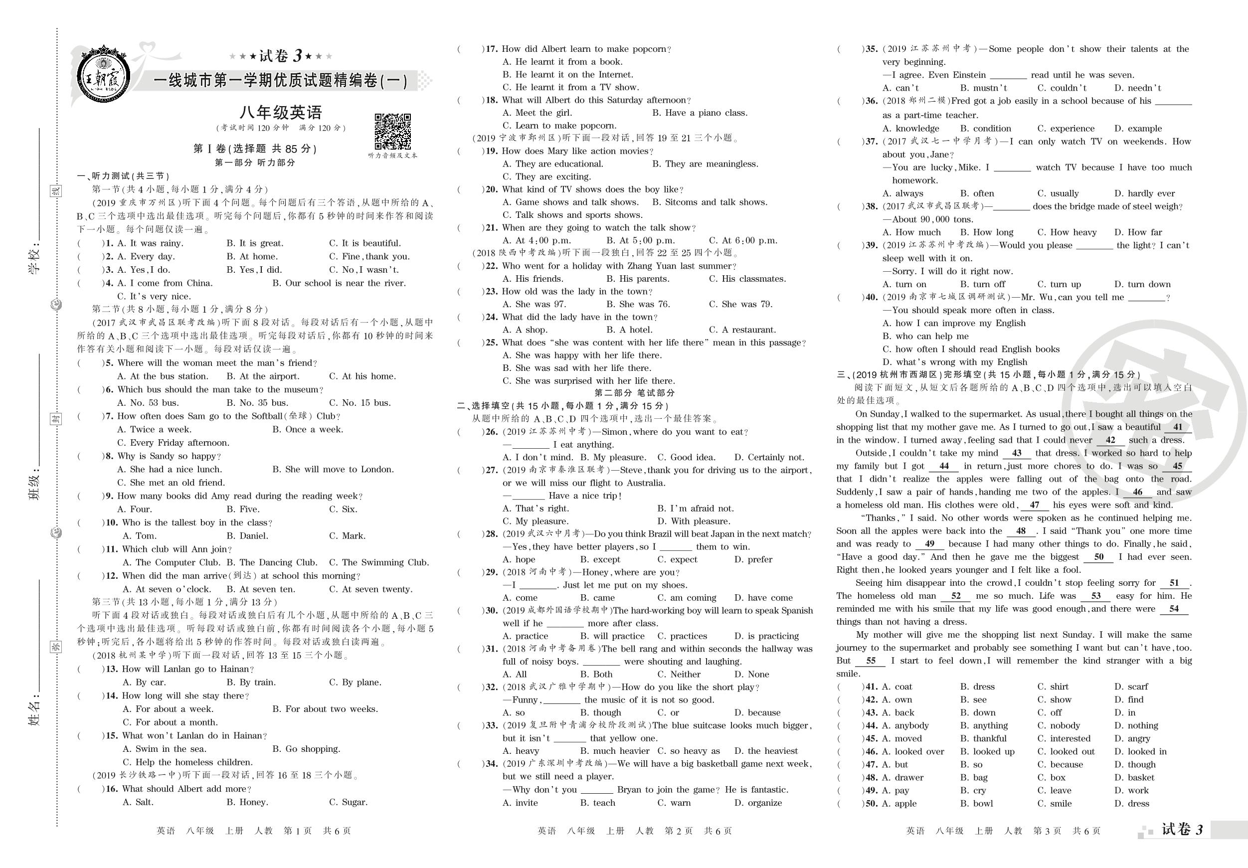 一线城市优质试题精编卷(一)八年级上册英语(人教版)【3】