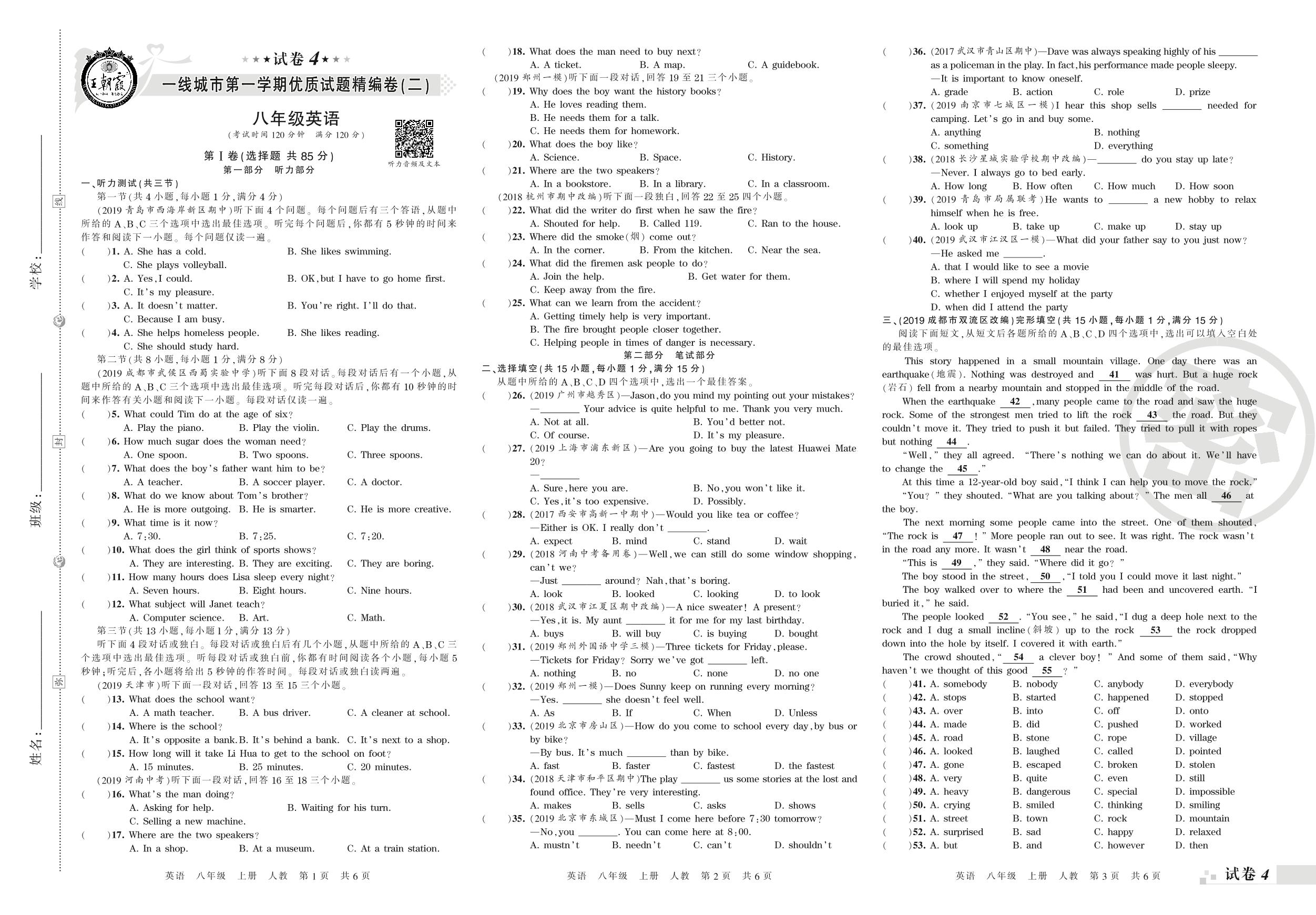 一线城市优质试题精编卷(二)八年级上册英语(人教版)【4】
