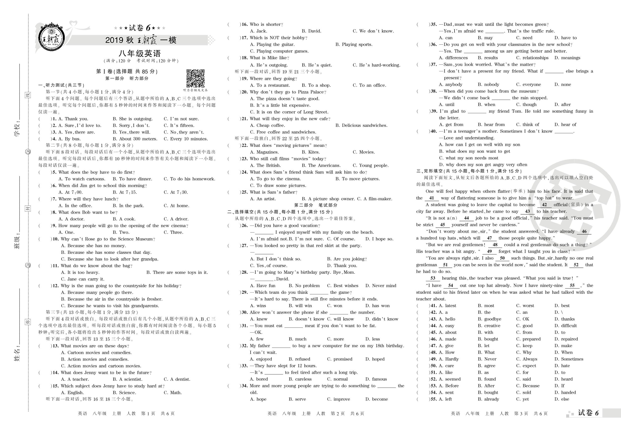 王朝霞期末模拟卷八年级上册英语(人教版)_R210809104710【6】