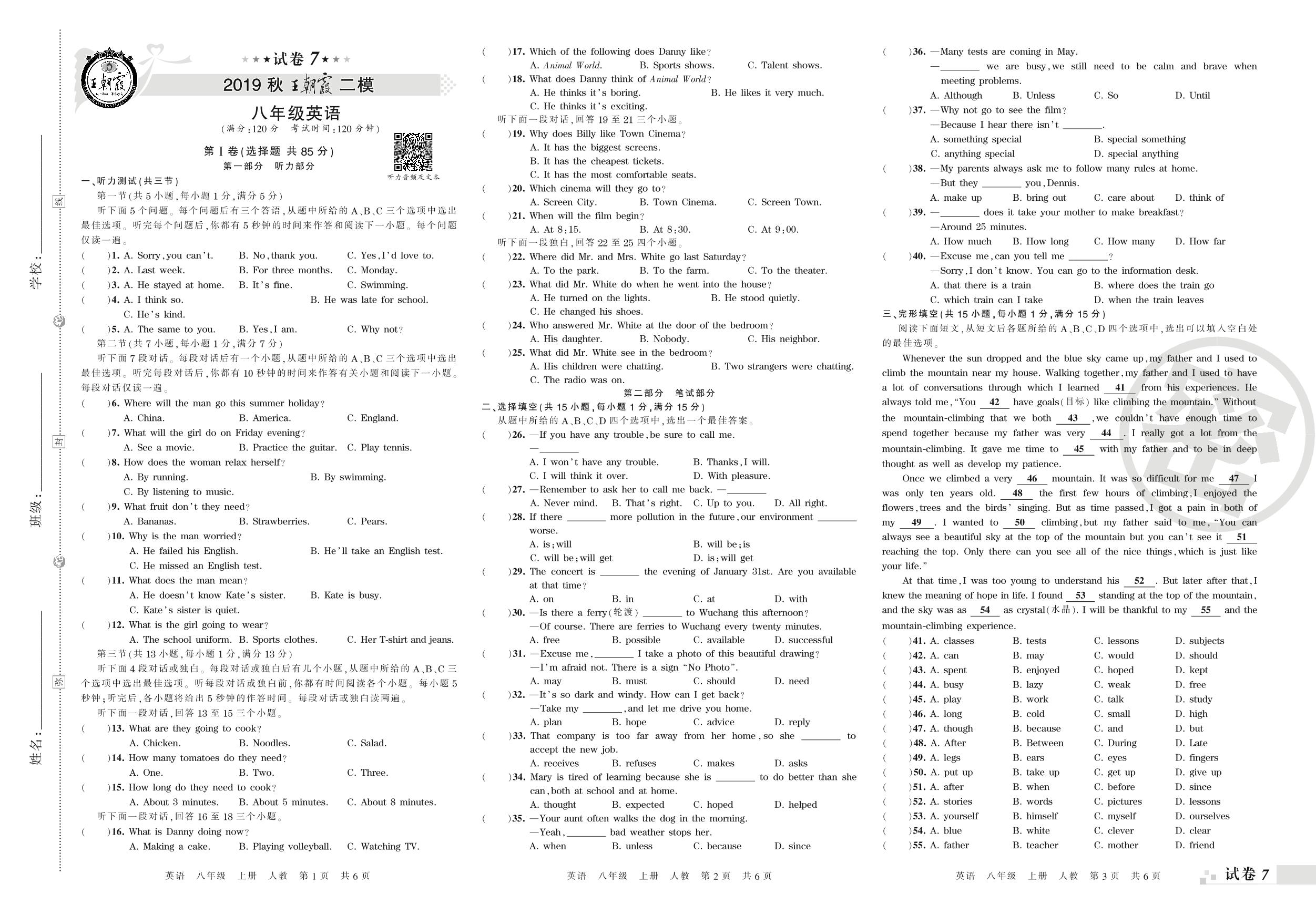 王朝霞期末模拟卷八年级上册英语(人教版)_R210809104718【7】