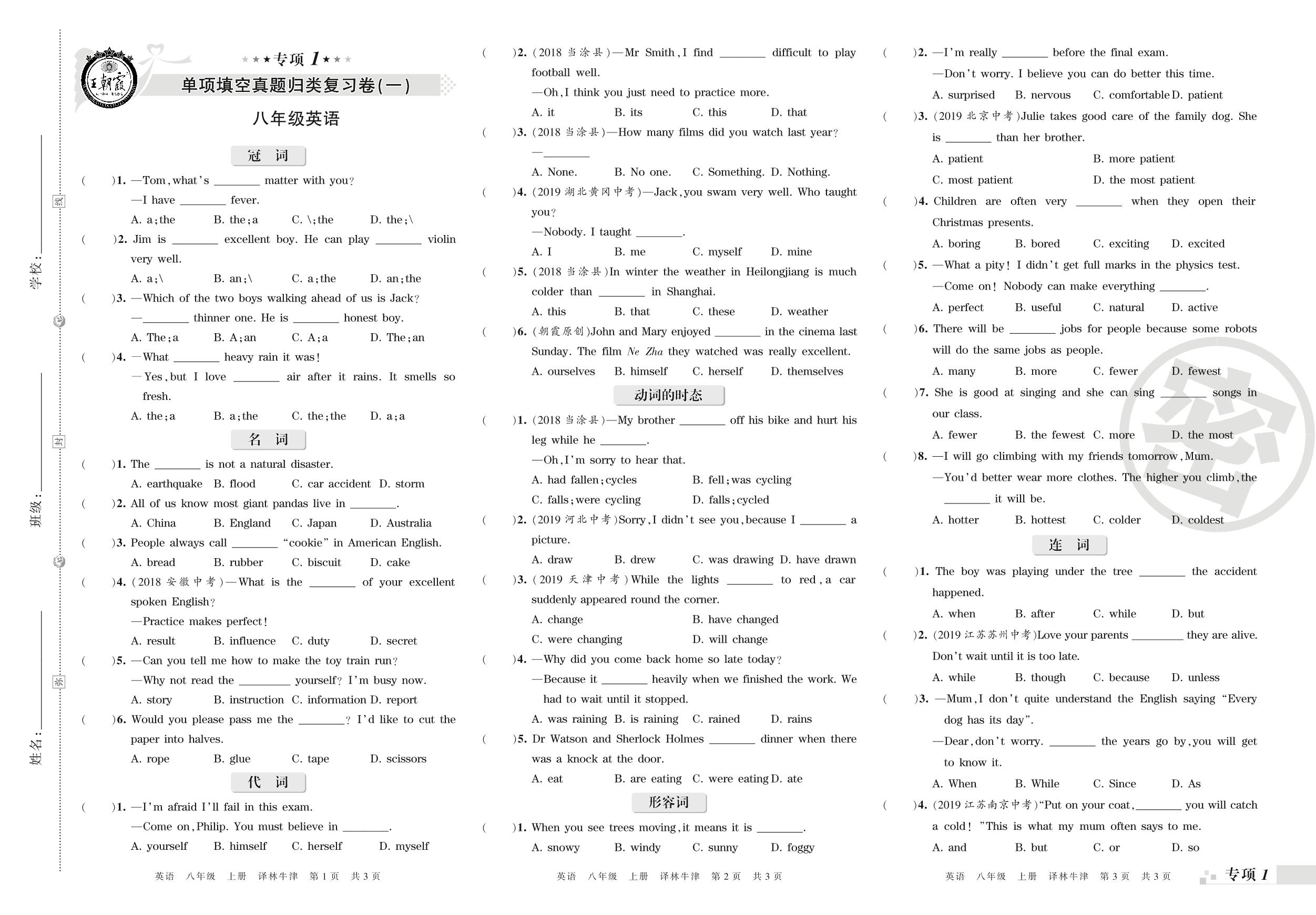 王朝霞期末专项卷——单项填空真题归类复习八年级上册英语(译林版)_R210809104732【0】