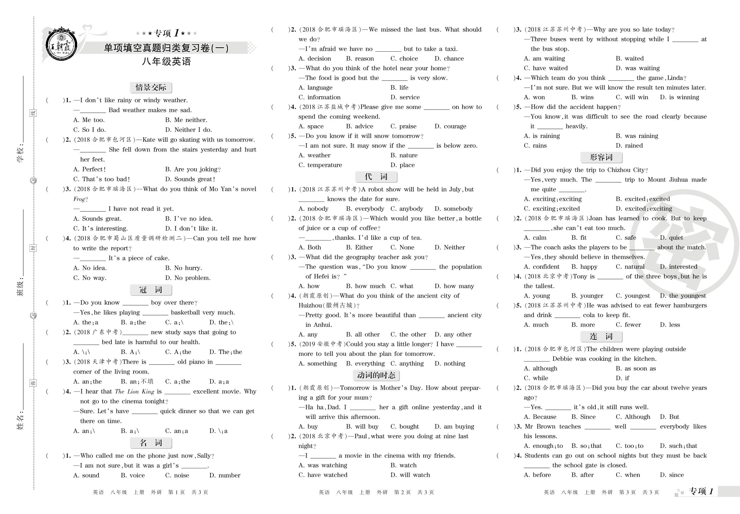 王朝霞期末专项卷——单项填空真题归类复习八年级上册英语(外研版)_R210809104846【0】