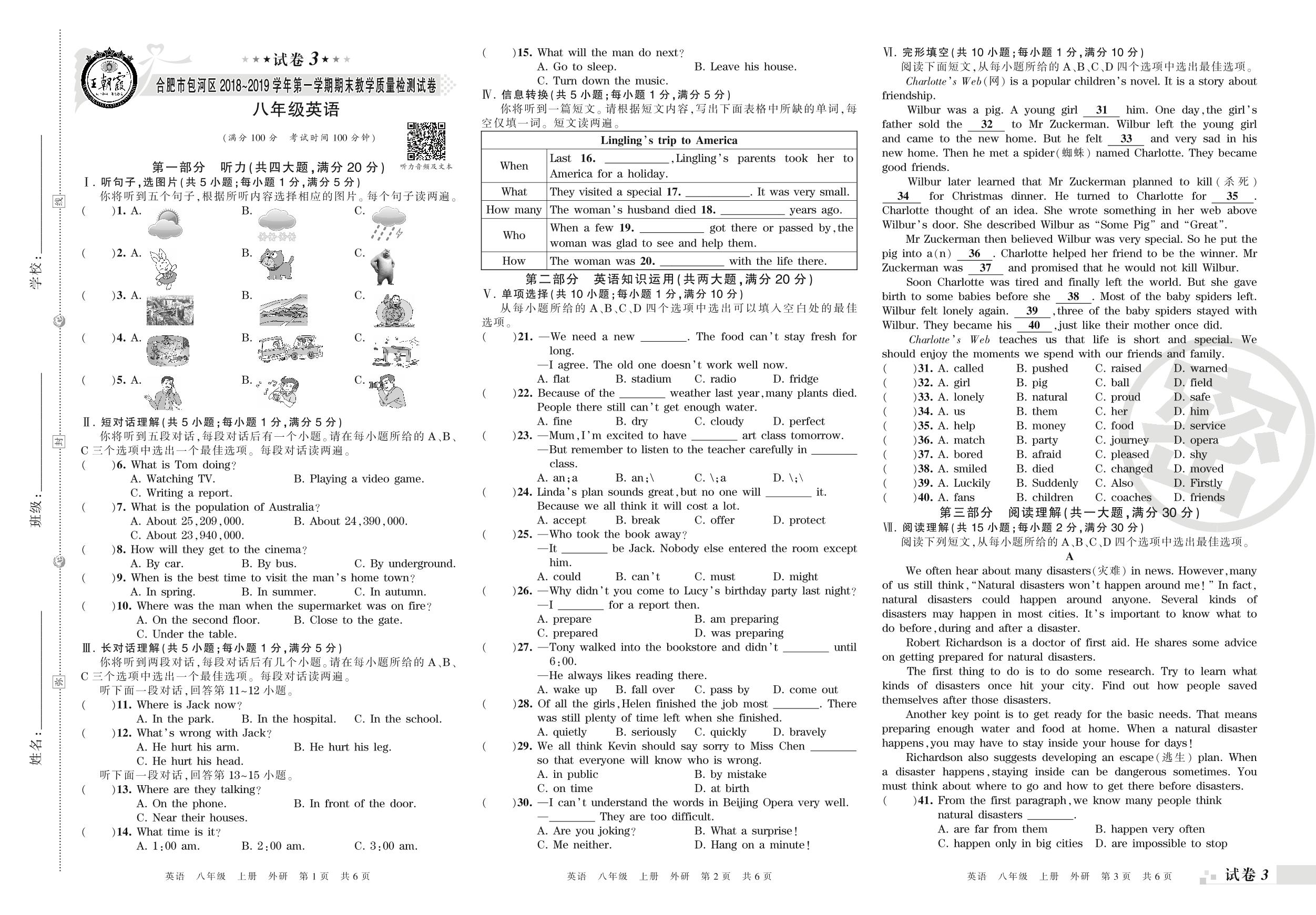 2018-2019学年第一学期合肥市包河区八年级英语试卷(外研版)【3】