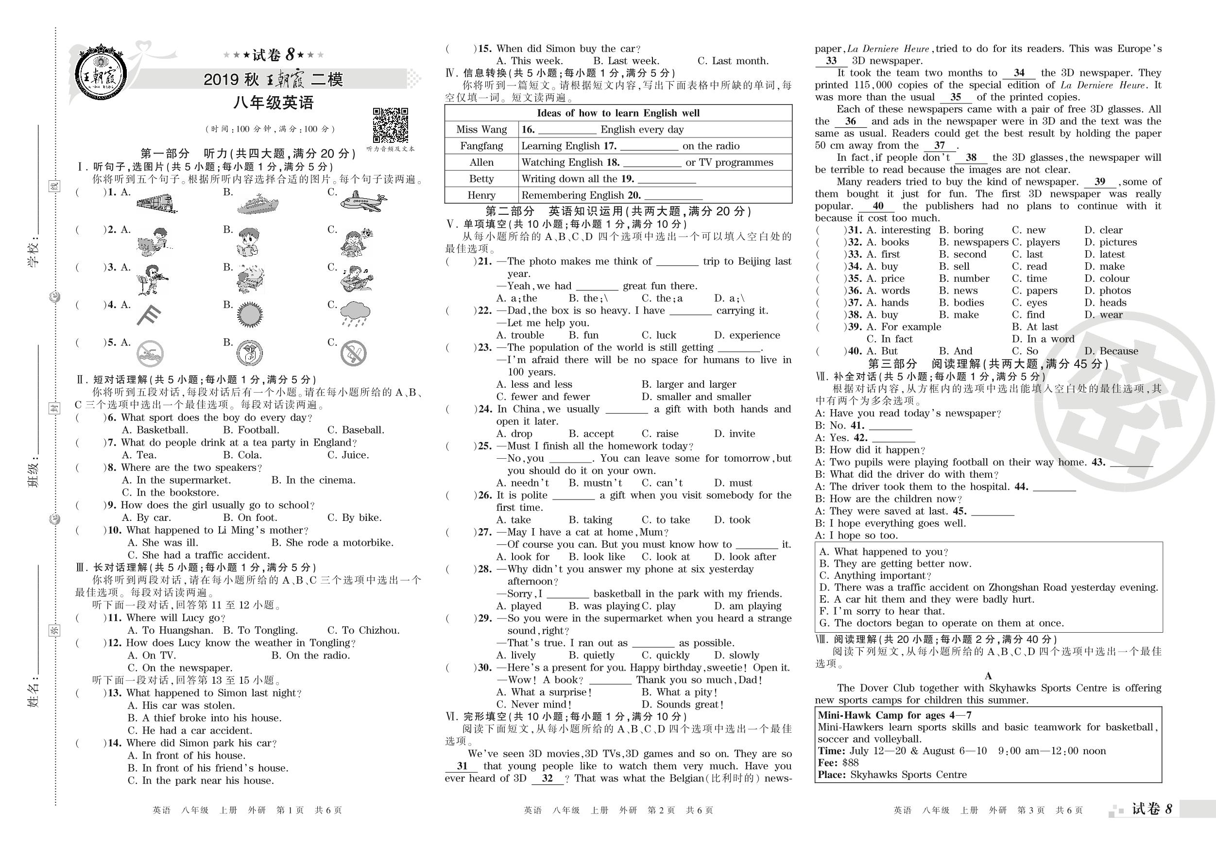 王朝霞期末模拟卷八年级上册英语(外研版)_R210809105004【8】
