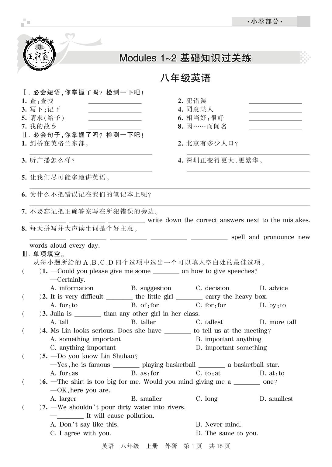 王朝霞期末小卷——基础知识过关练八年级上册英语(外研版)_R210809105013【0】