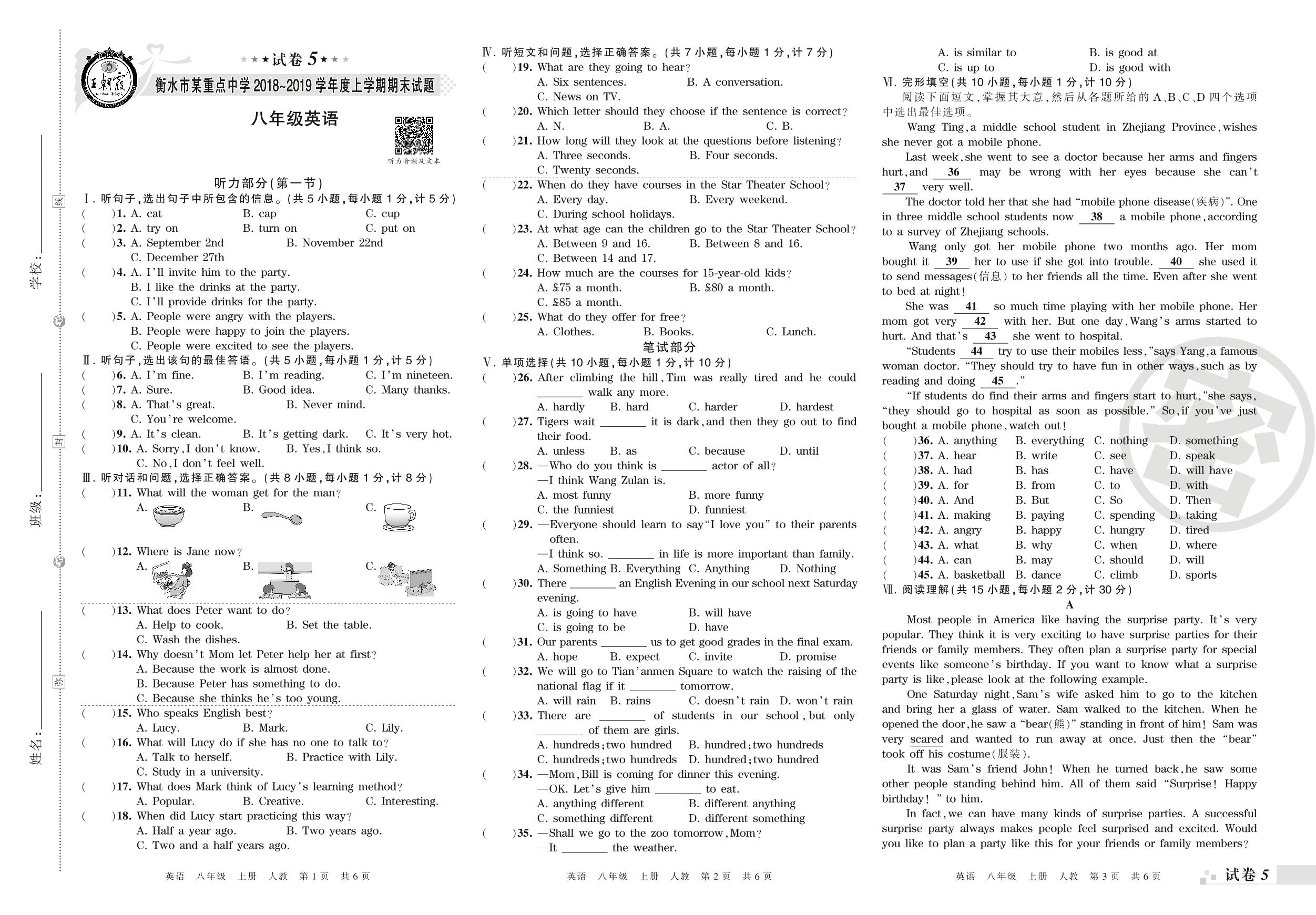 2018-2019学年第一学期衡水市某重点中学八年级英语试卷(人教版)【5】