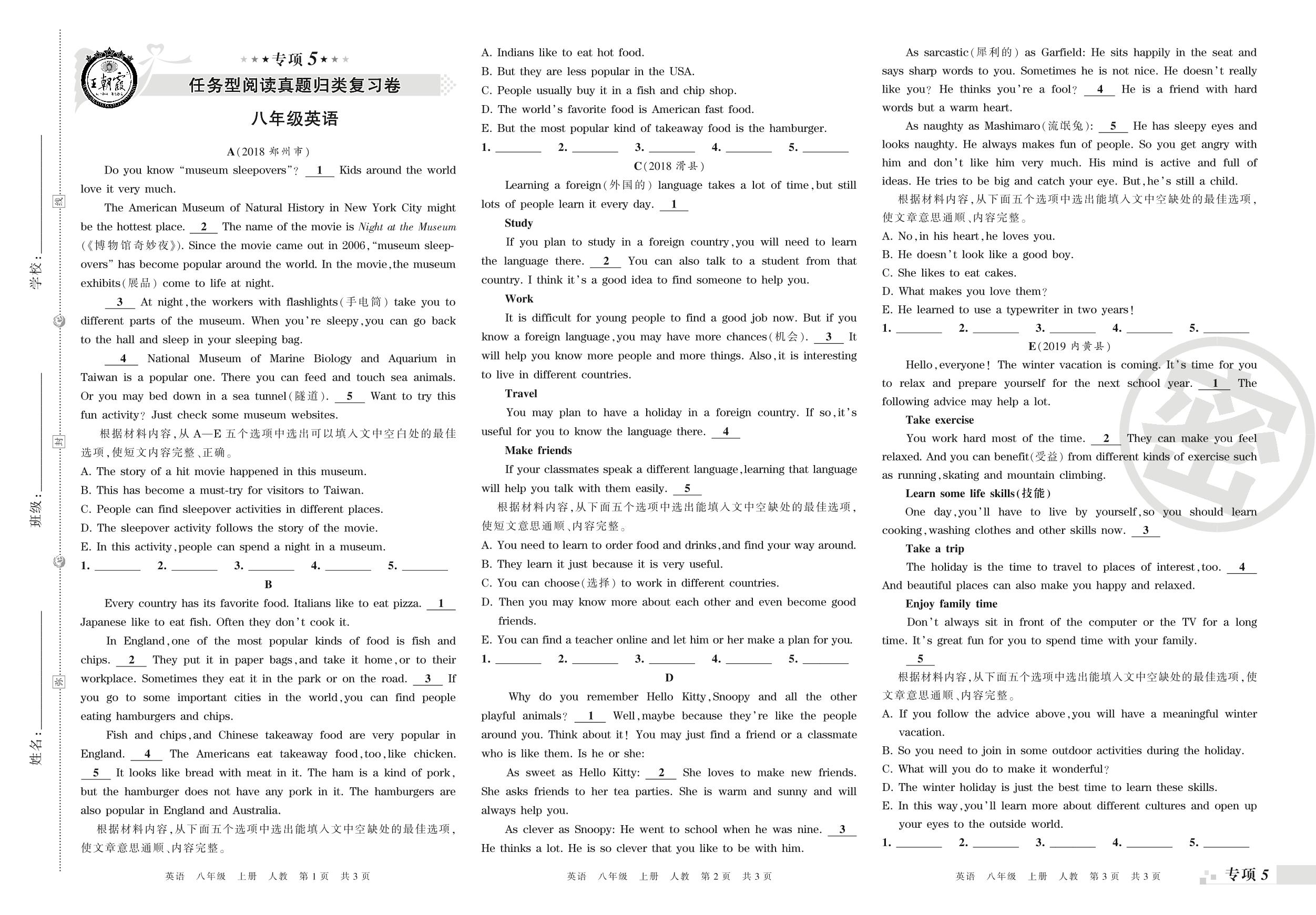 王朝霞期末专项卷——任务型阅读、词语运用真题归类复习八年级上册英语(人教版)_R210809105427【0】