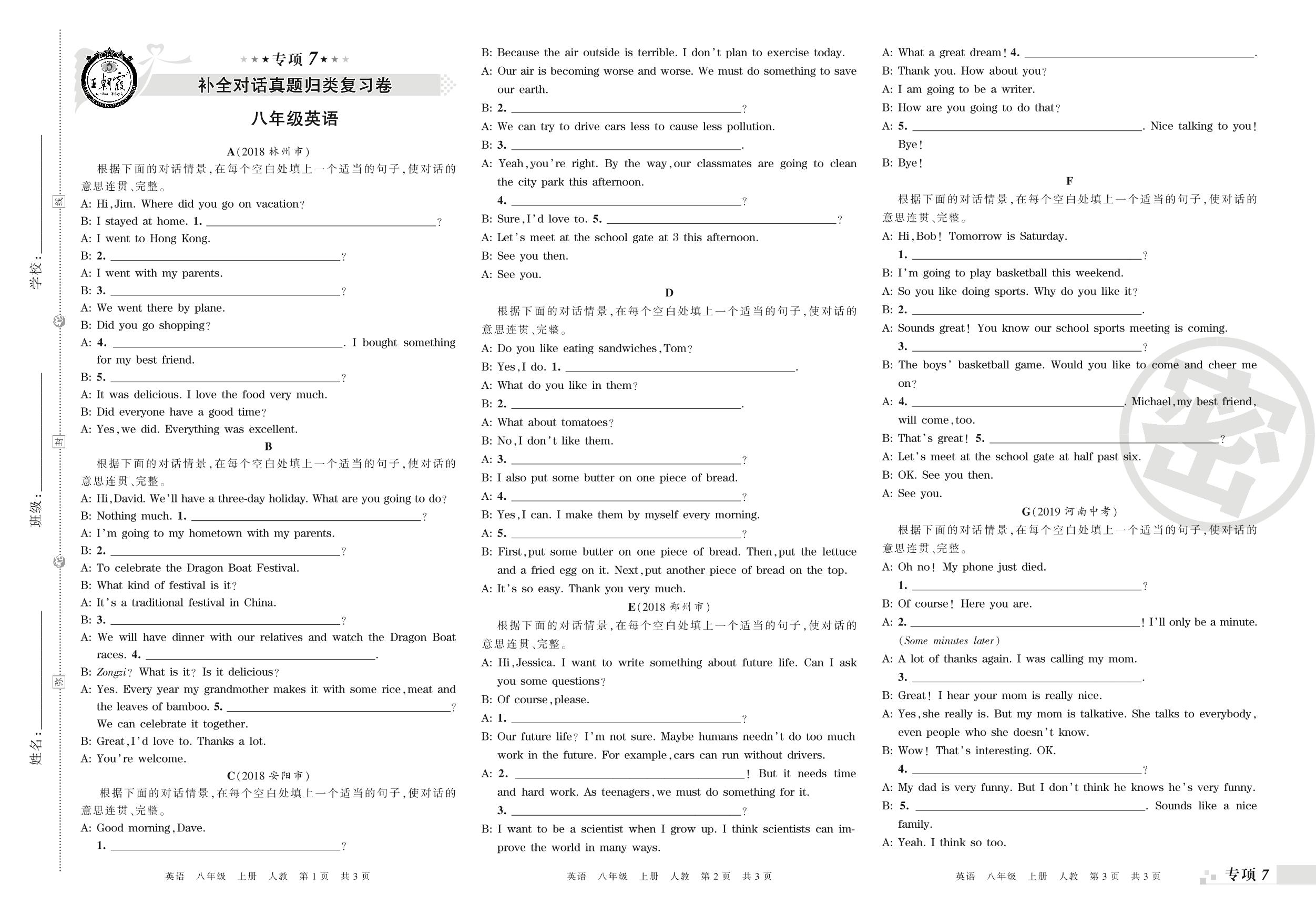 王朝霞期末专项卷——补全对话、书面表达真题归类复习八年级上册英语(人教版)_R210809105434【0】