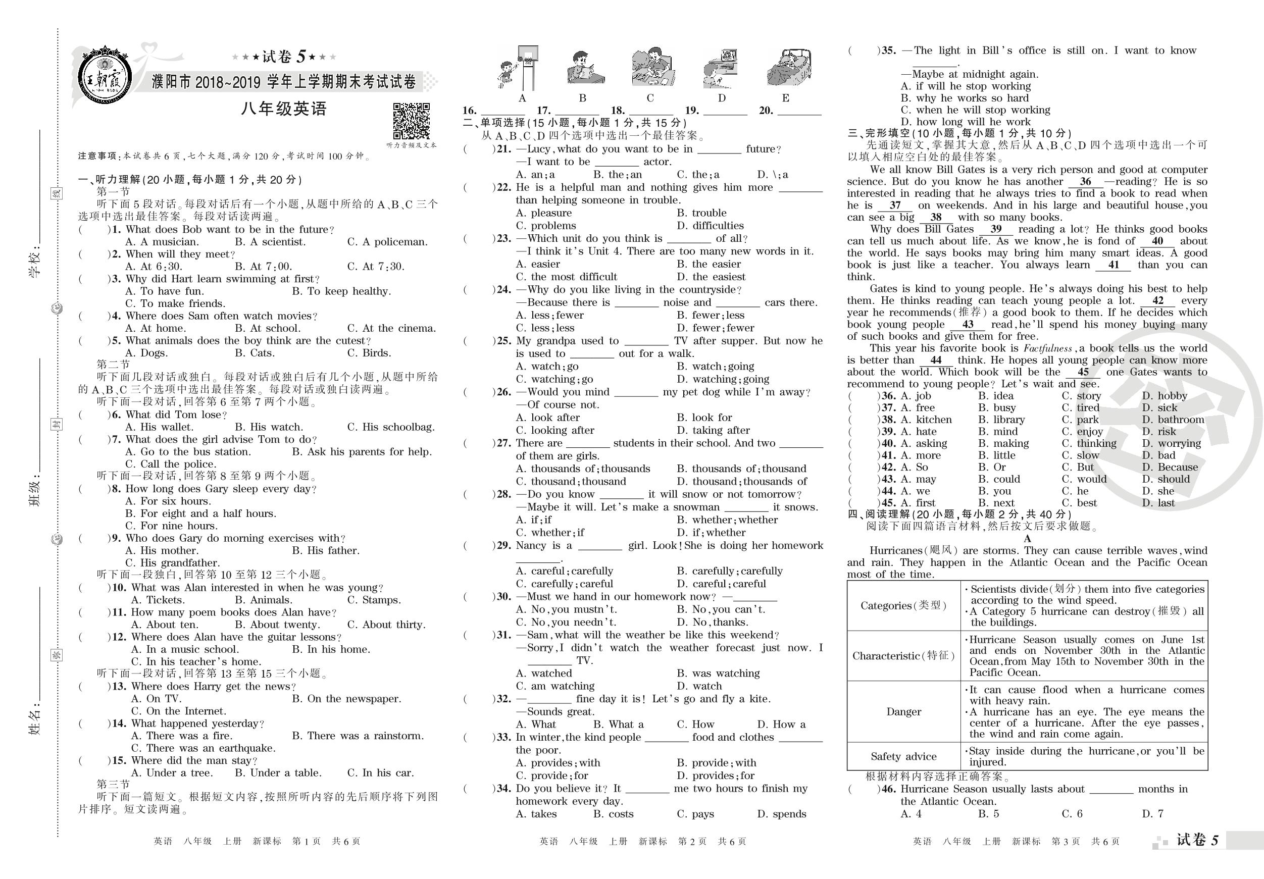 2018-2019学年第一学期濮阳市八年级英语试卷(新课版)【5】