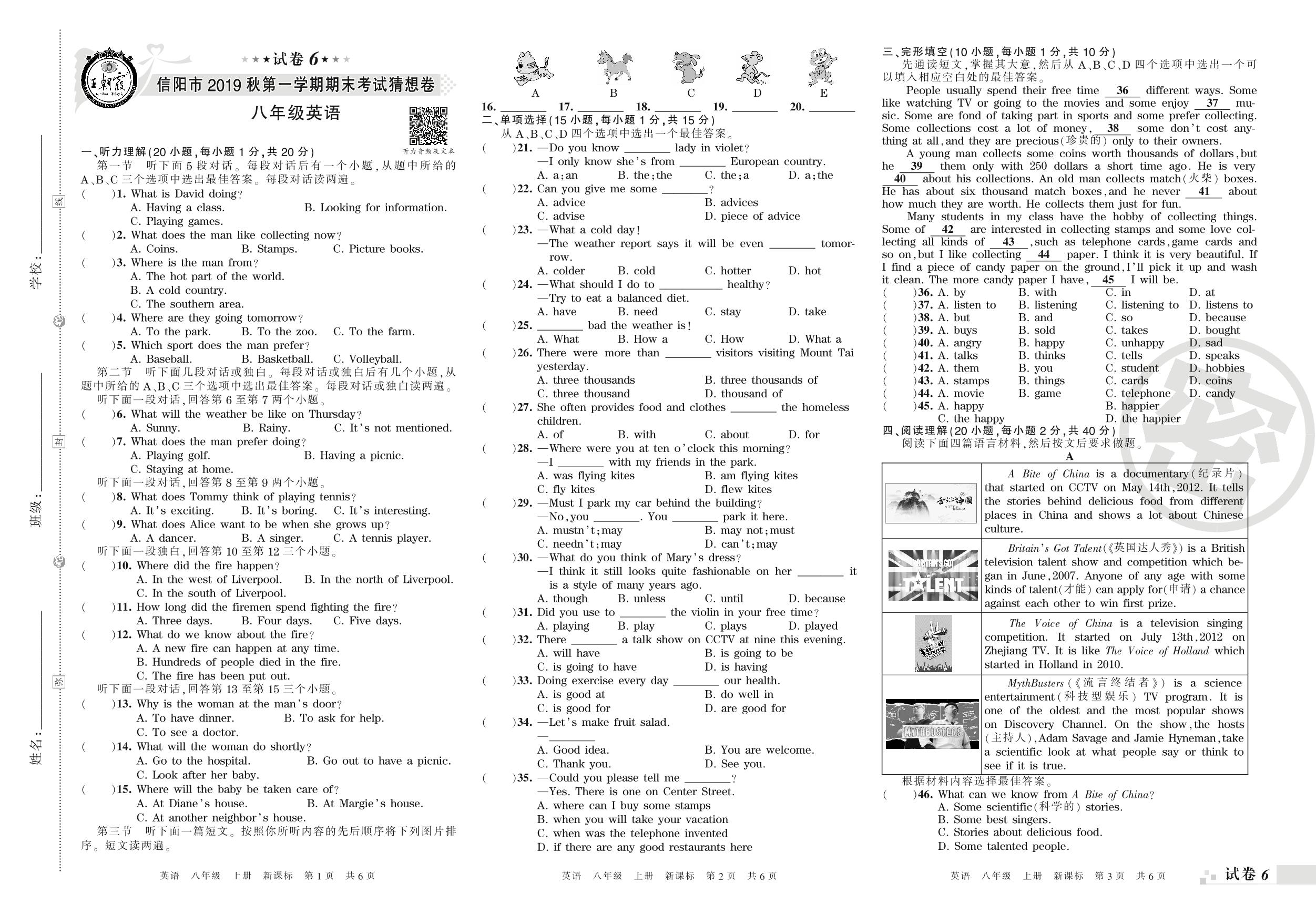 2018-2019学年第一学期信阳市猜想卷八年级英语试卷(新课版)【6】