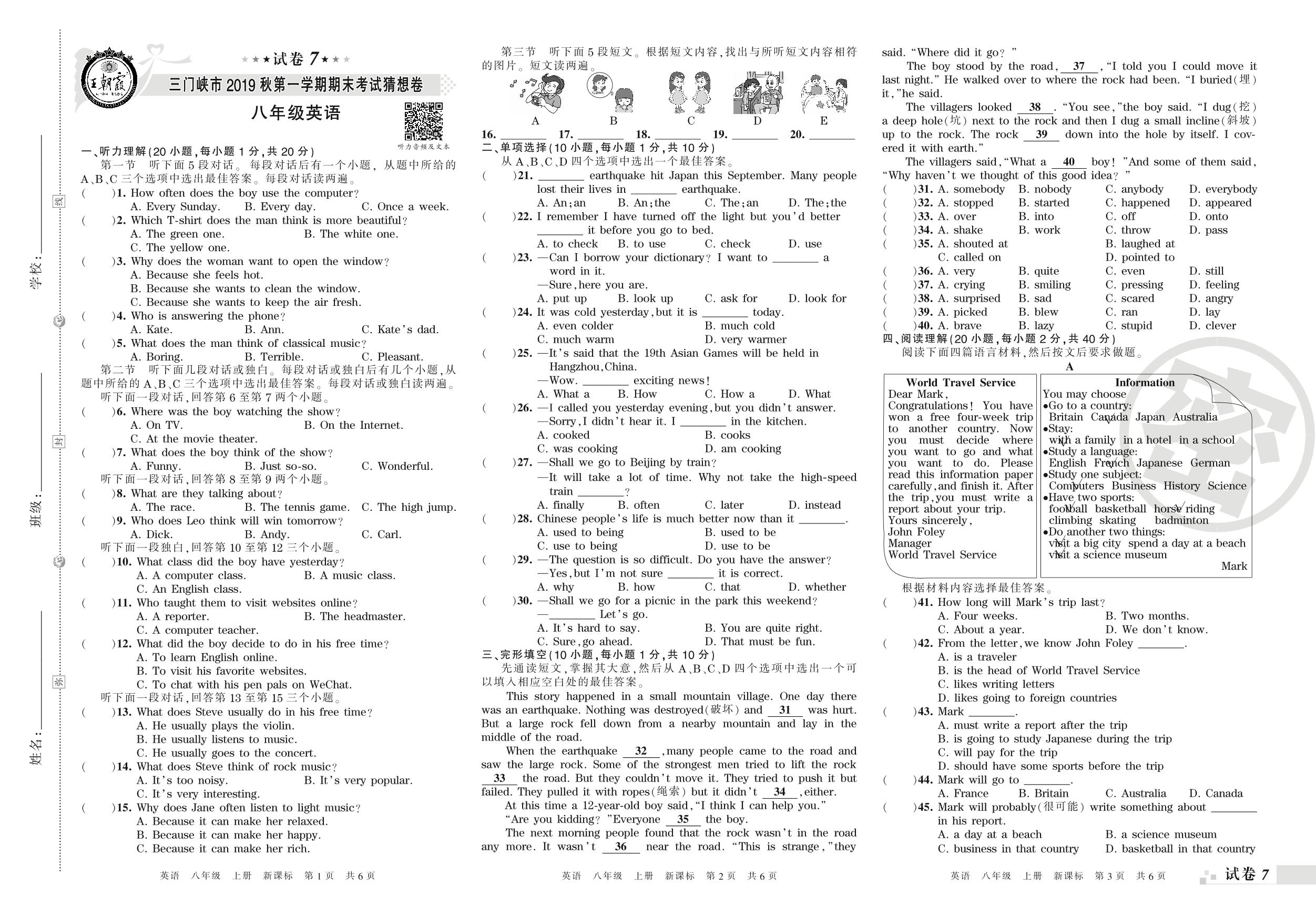 2018-2019学年第一学期三门峡市猜想卷八年级英语试卷(新课版)【7】