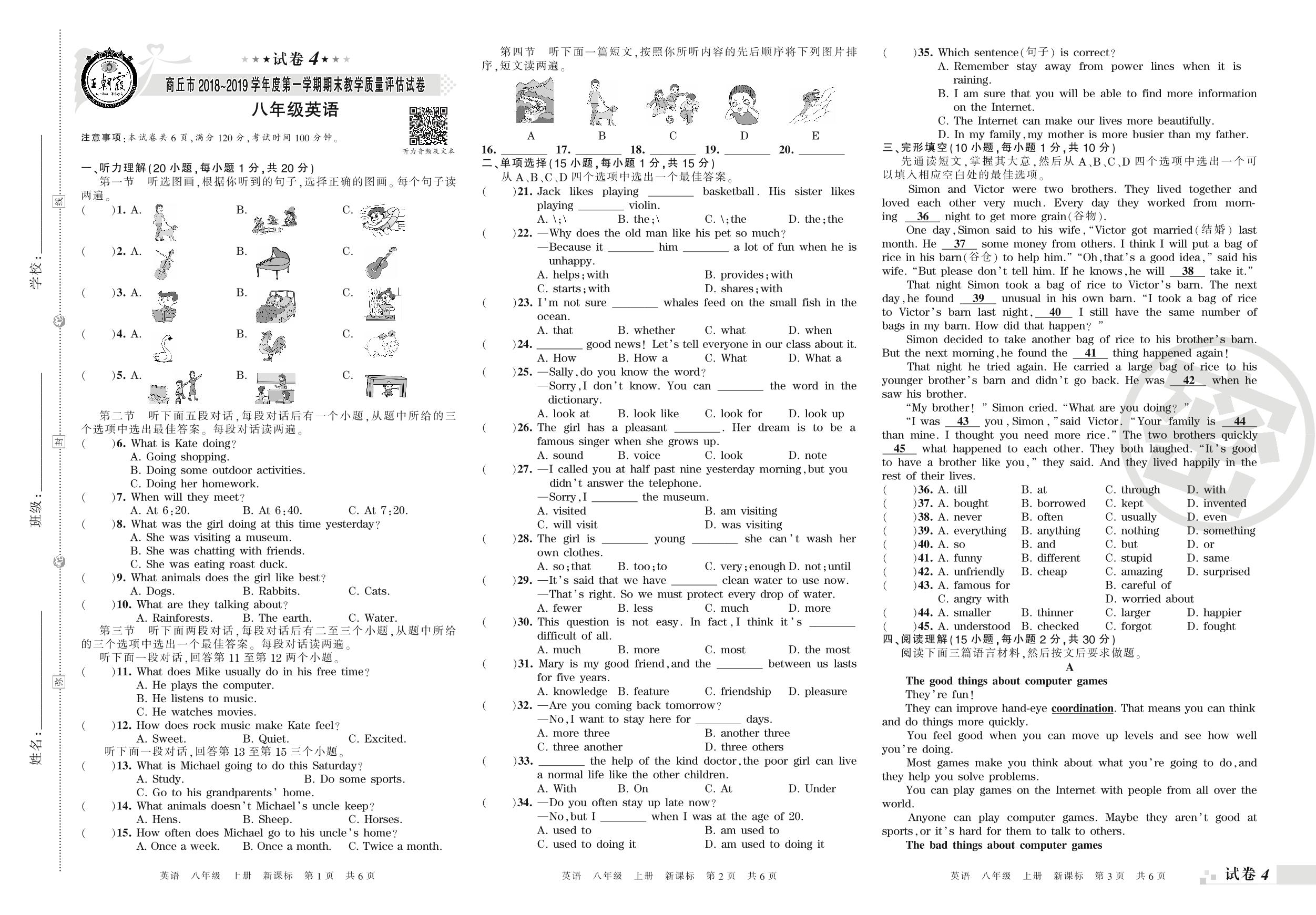 2018-2019学年第一学期商丘市八年级英语试卷(新课版)【4】
