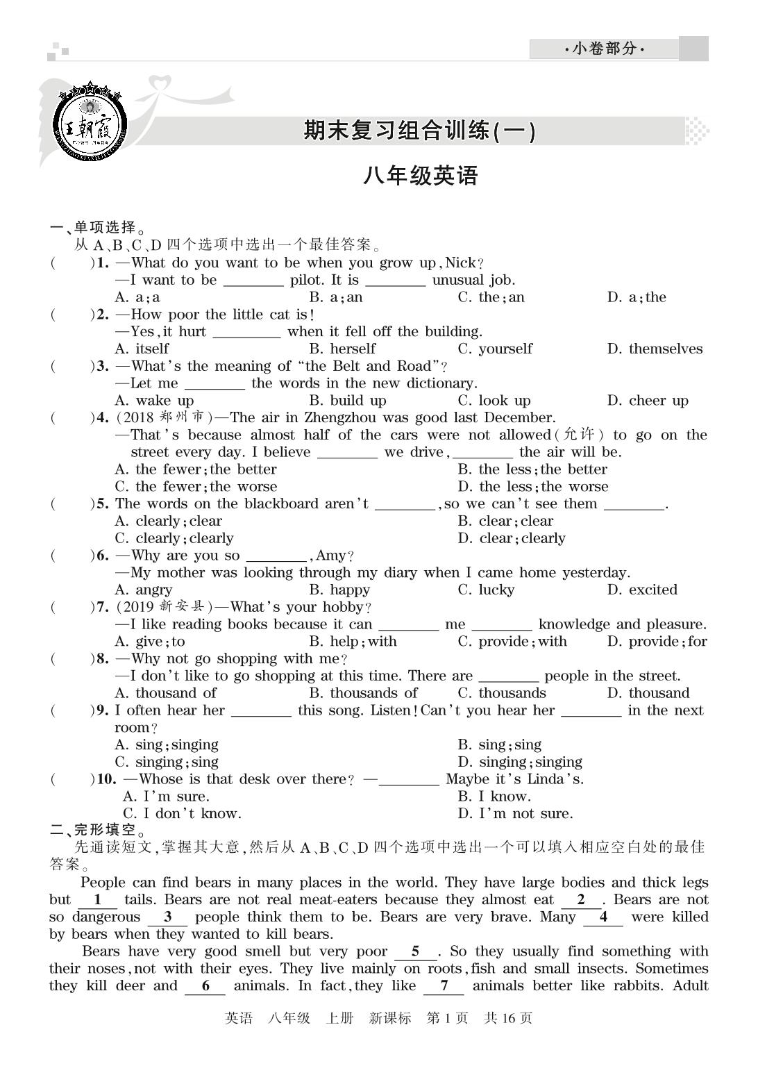 王朝霞期末小卷——期末复习组合训练八年级上册英语(新课版)_R210809105738【0】